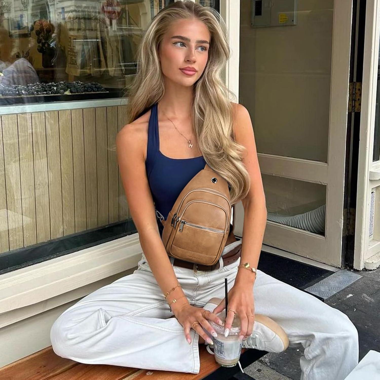 BOSTANTEN 7L Sling Bag For Women CrossBody Bags Large Cross Body Purse Vegan Leather Sling Backpack for Travel Essentials(Coffee)