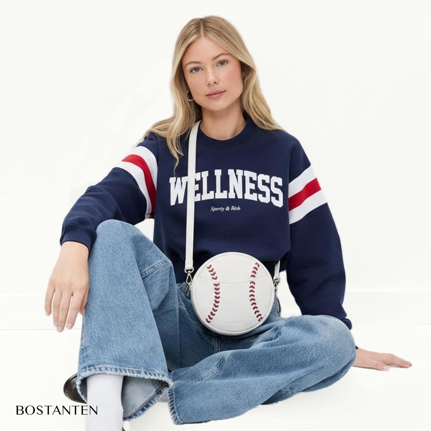 BOSTANTEN Baseball Crossbody Bags for Women Small Round Purse with Card Slots Cute Vegan Leather Shoulder Bag for Game Day(Red)