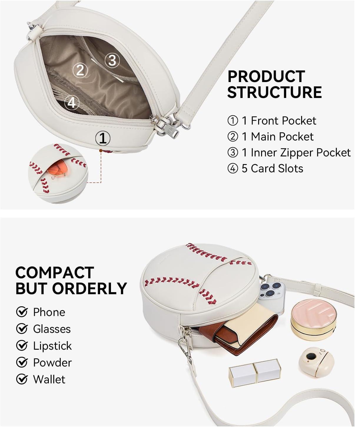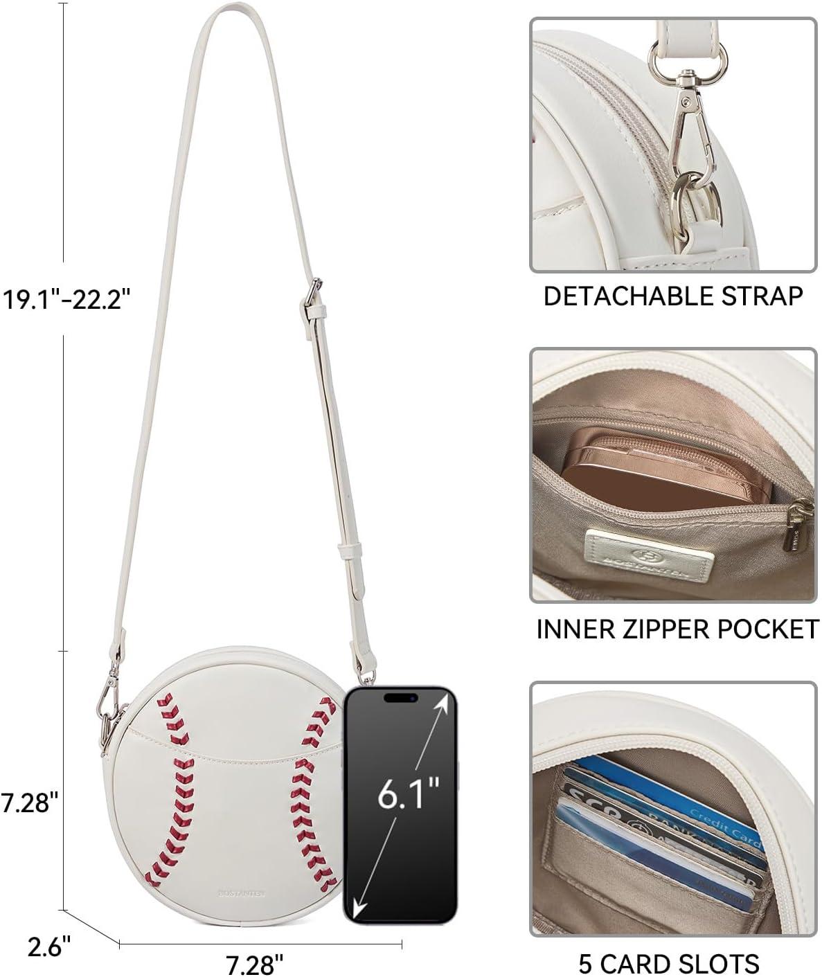 Be the first to review “BOSTANTEN Baseball Crossbody Bags for Women Small Round Purse with Card Slots Cute Vegan Leather Shoulder Bag for Game Day(Beige)”