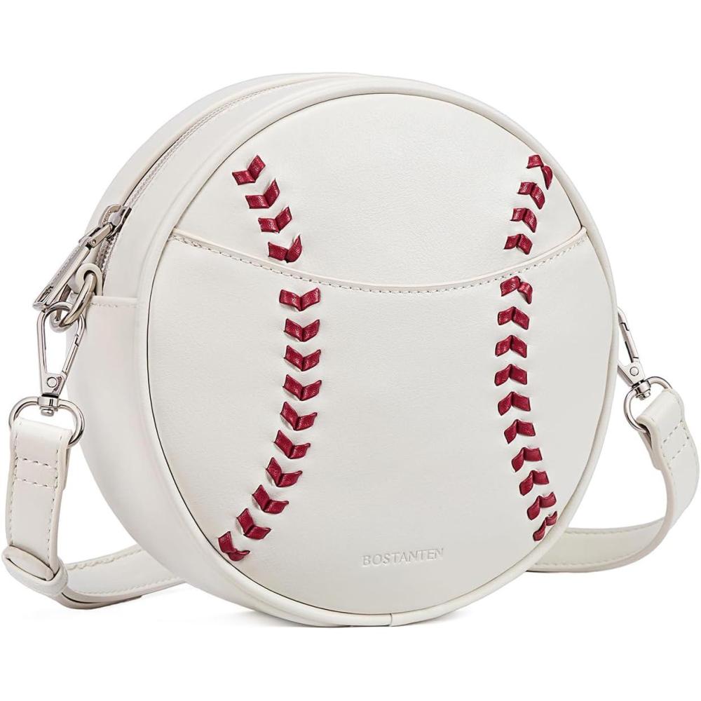 BOSTANTEN Baseball Crossbody Bags for Women Small Round Purse with Card Slots Cute Vegan Leather Shoulder Bag for Game Day(Beige)