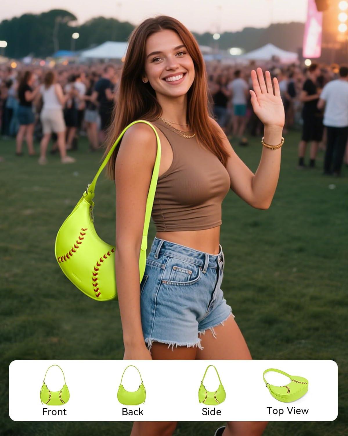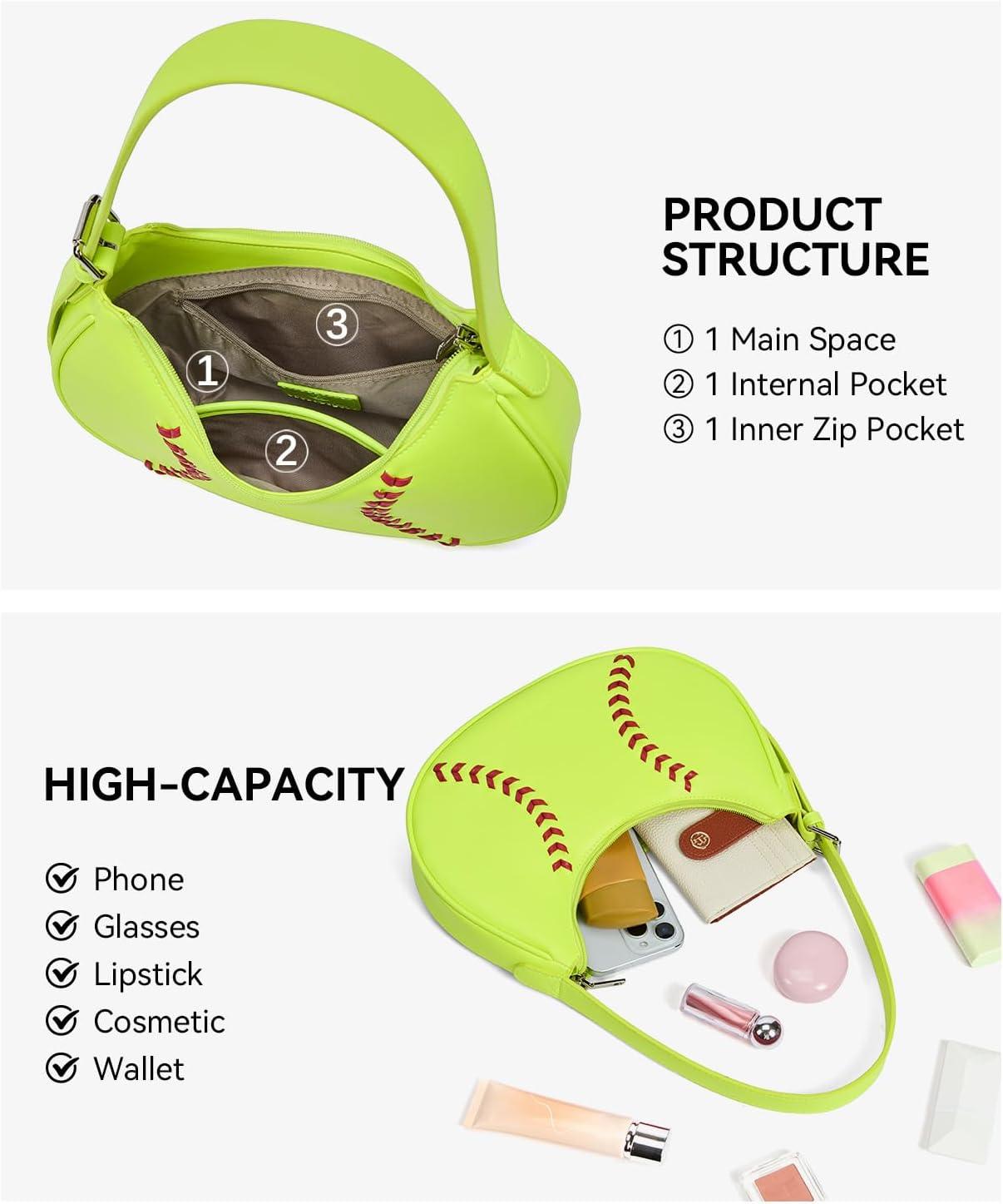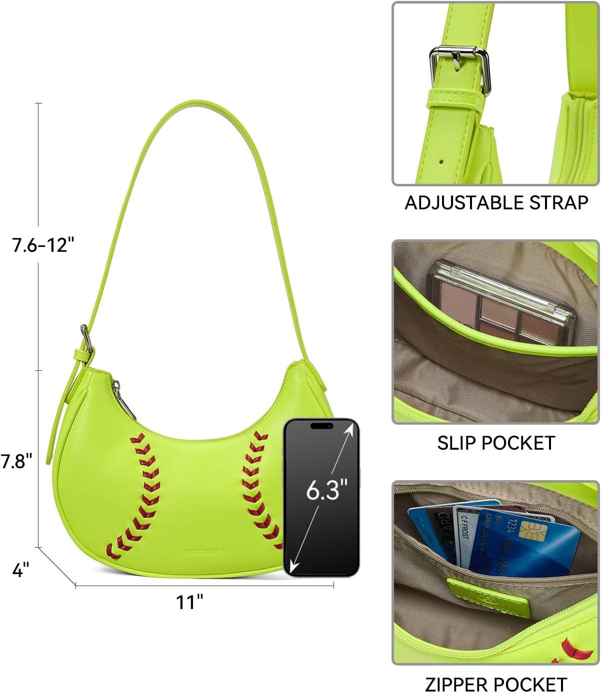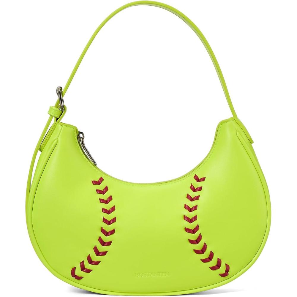 BOSTANTEN Baseball Shoulder Purses for Sport Mom Trendy Small Hobo Bag Vegan Leather Women Handbags for Daily Events(Fluorescent Green)