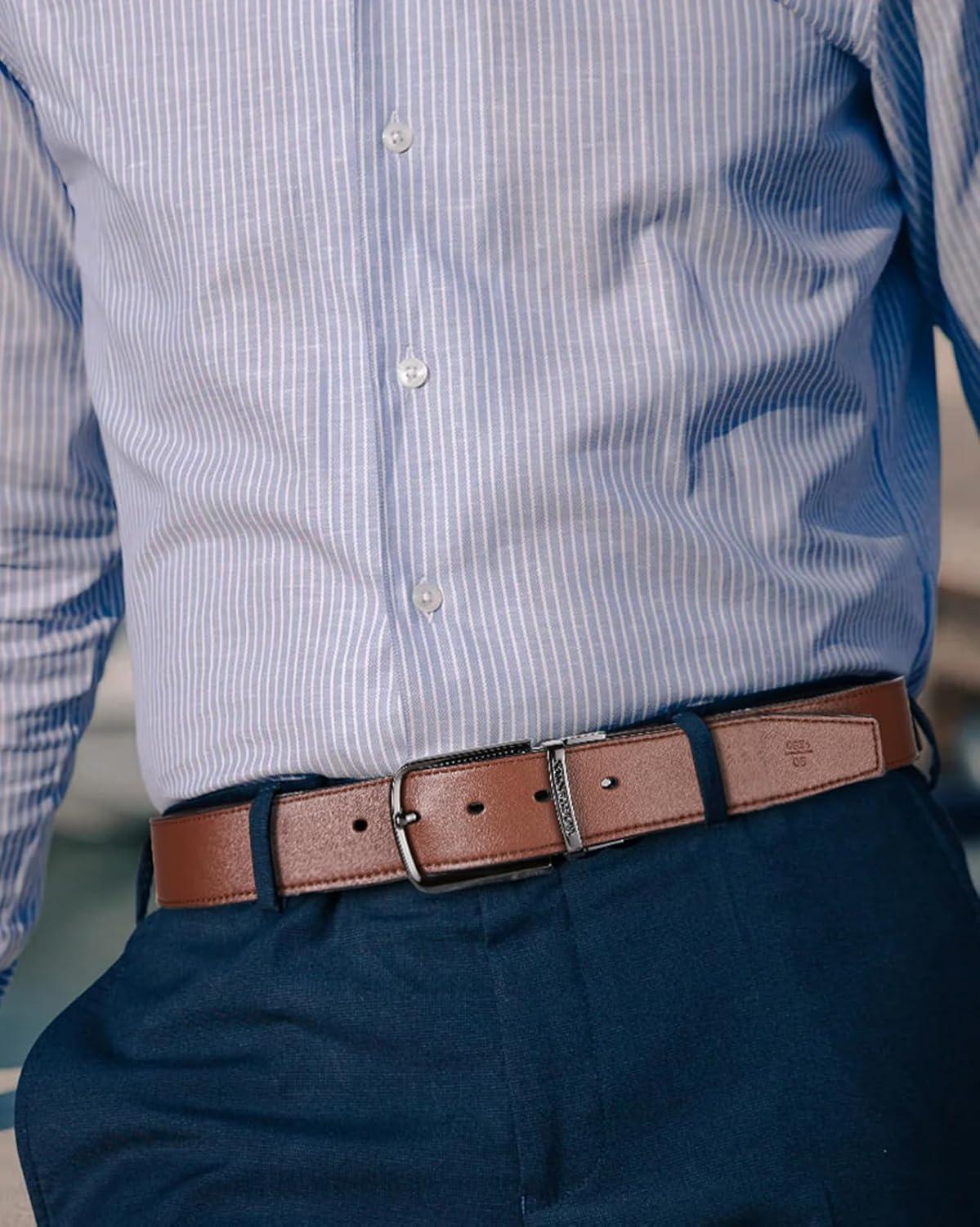BOSTANTEN Belt Men Leather Reversible Belts for Men 1 3/8″ for Casual Golf Dress Pants, Two-in-One Belt Gift(005-gun-black/Brown)