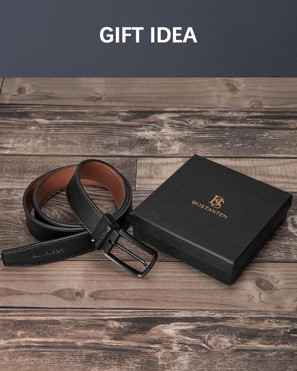 BOSTANTEN Belt Men Leather Reversible Belts for Men 1 3/8″ for Casual Golf Dress Pants, Two-in-One Belt Gift(004-matte-black/Brown)