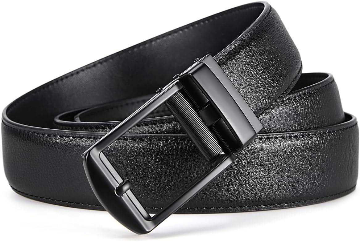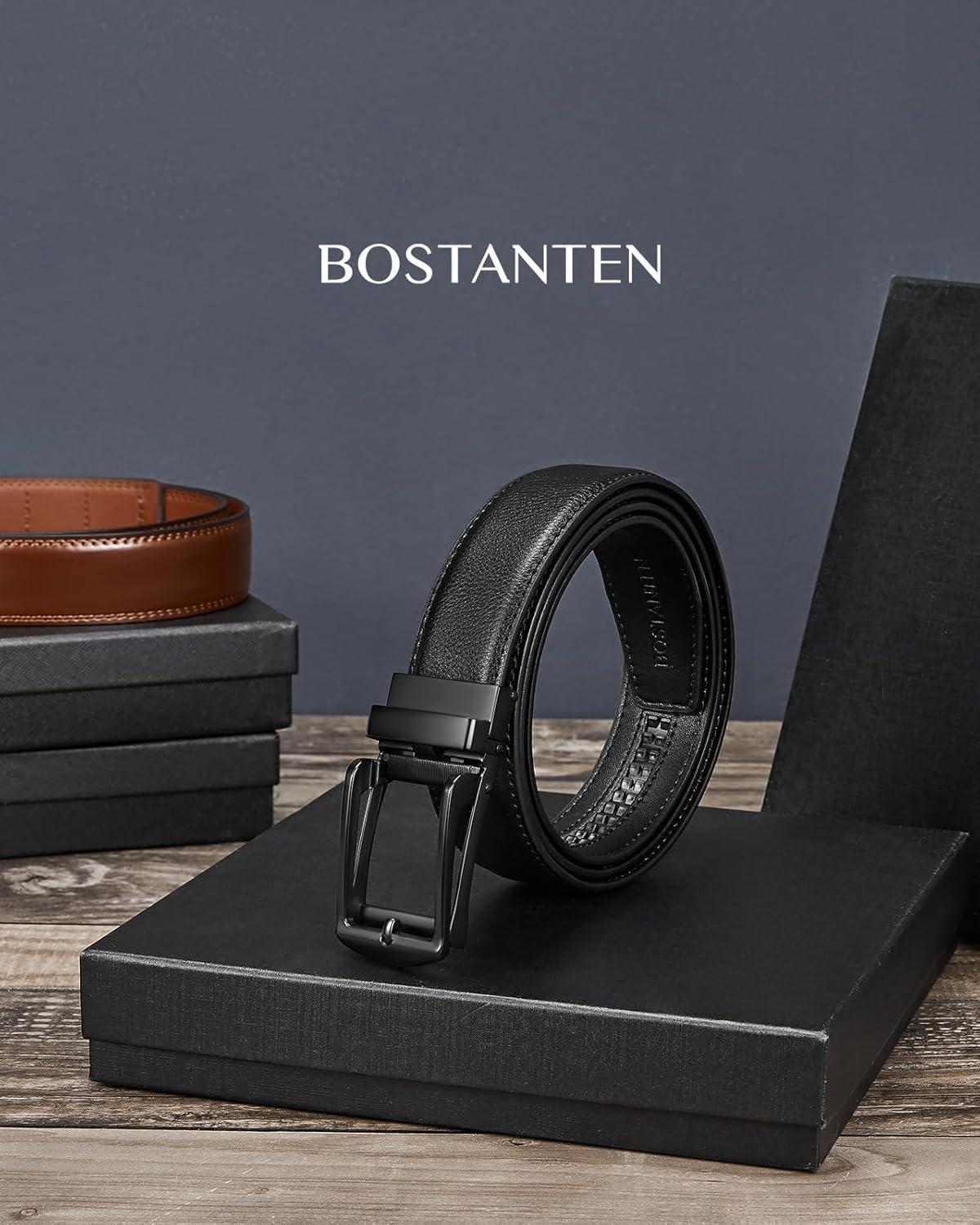 BOSTANTEN Belt Men Leather Reversible Belts for Men 1 3/8″ for Casual Golf Dress Pants, Two-in-One Belt Gift(004-matte Black / Smooth)