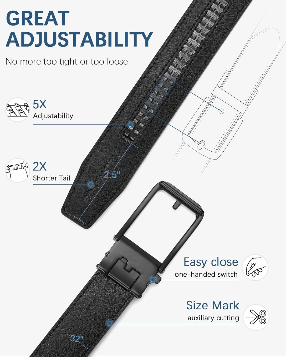 BOSTANTEN Belt Men Leather Reversible Belts for Men 1 3/8″ for Casual Golf Dress Pants, Two-in-One Belt Gift(011-all Black)