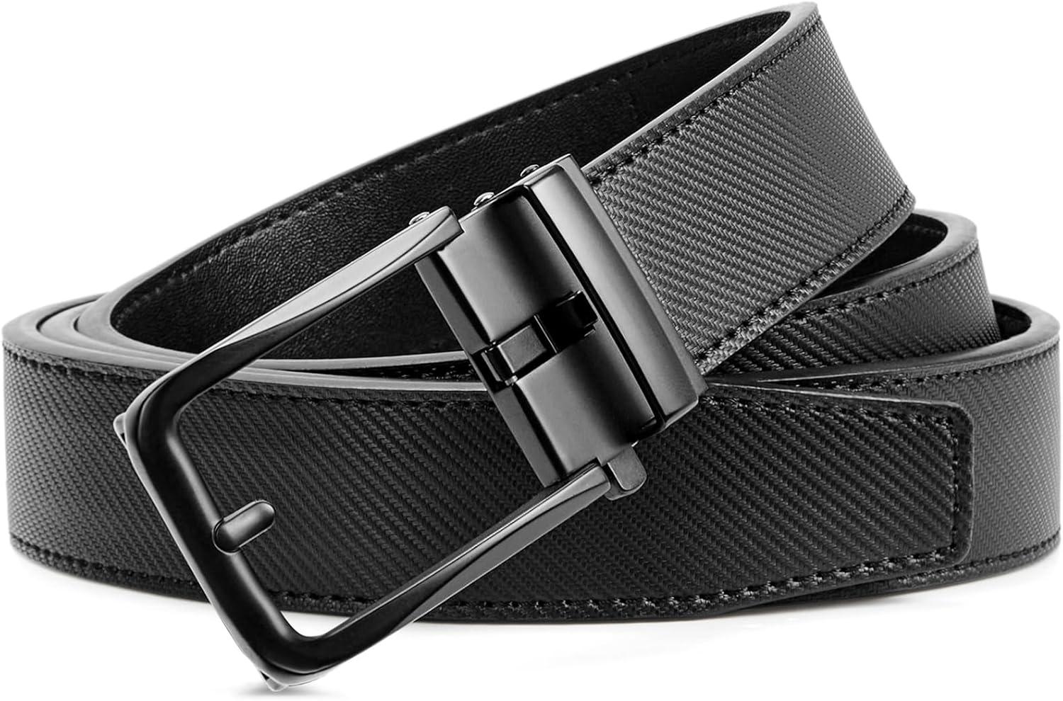 BOSTANTEN Belt Men Leather Reversible Belts for Men 1 3/8″ for Casual Golf Dress Pants, Two-in-One Belt Gift(010-all Black)