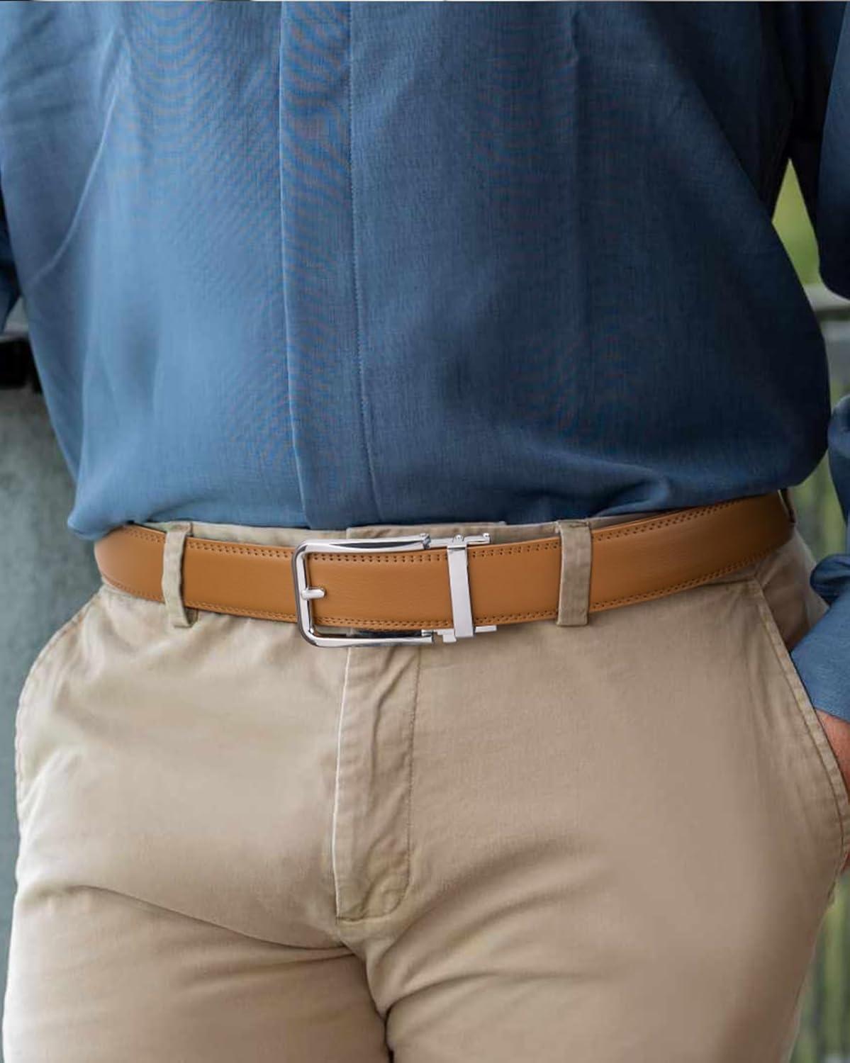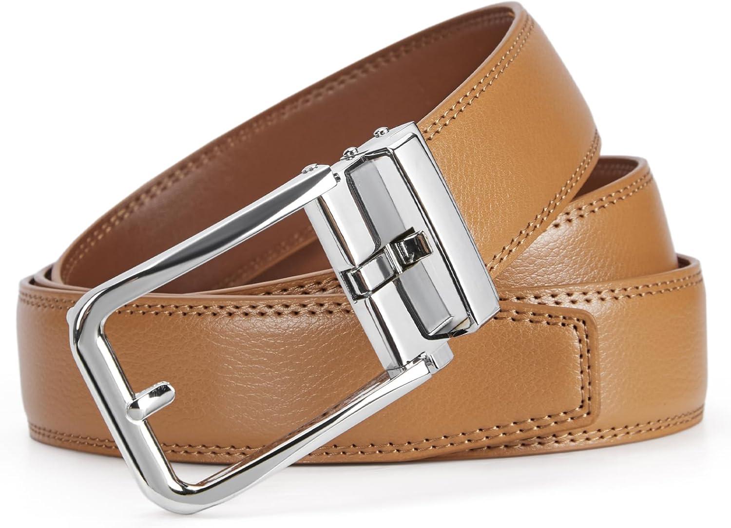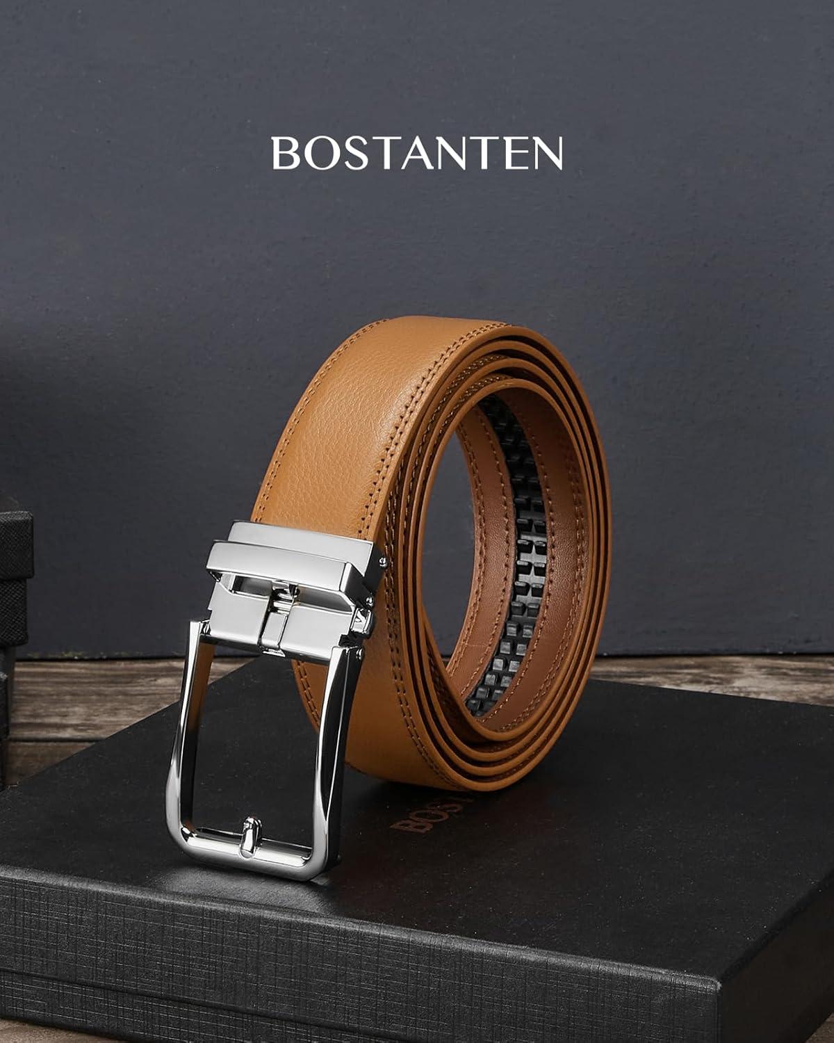 BOSTANTEN Belt Men Leather Reversible Belts for Men 1 3/8″ for Casual Golf Dress Pants, Two-in-One Belt Gift(012-silver+brown)