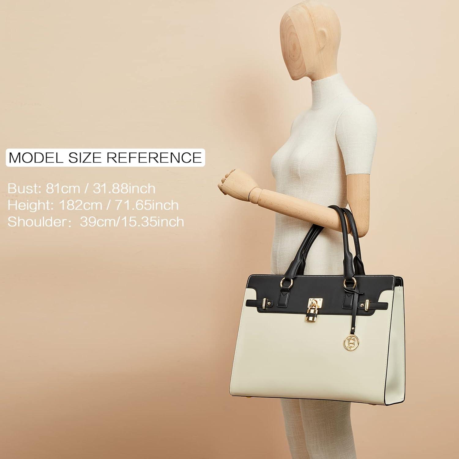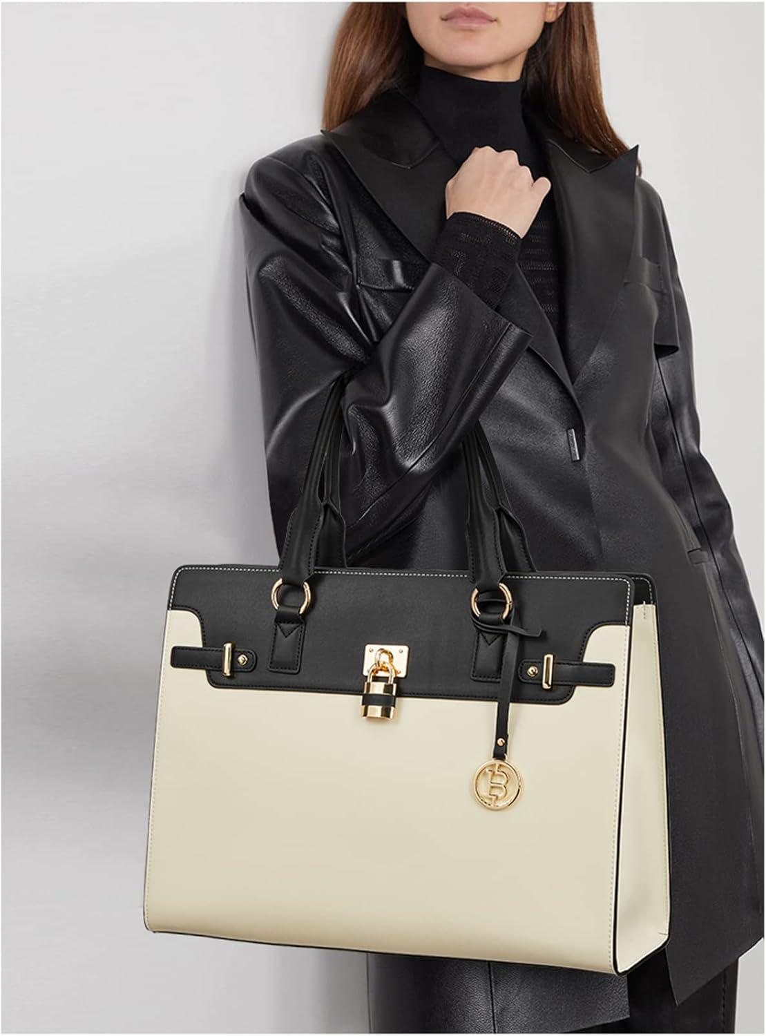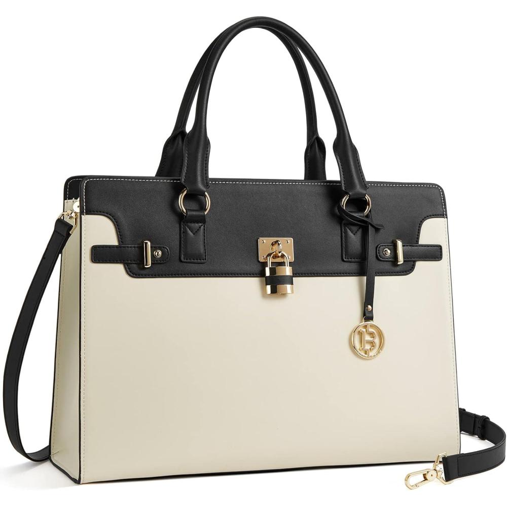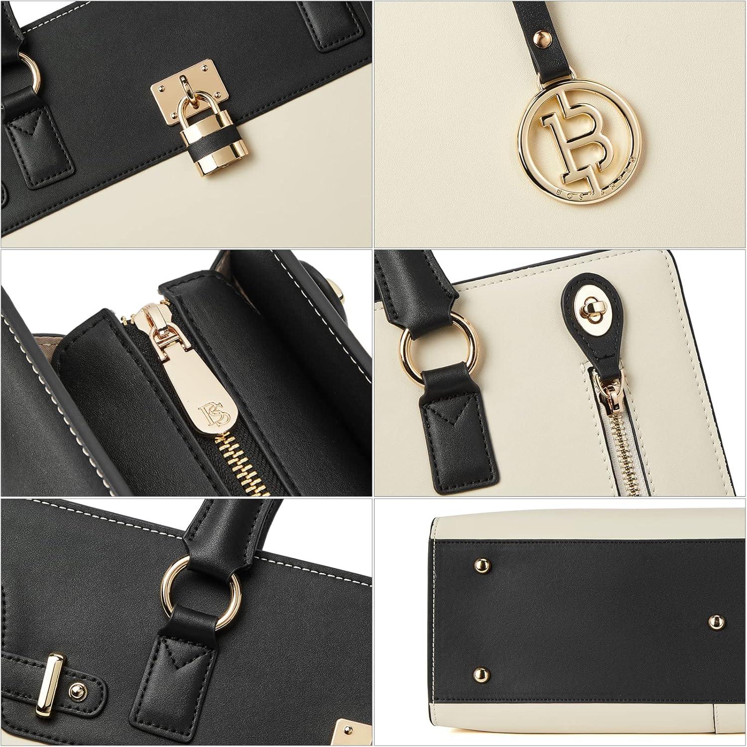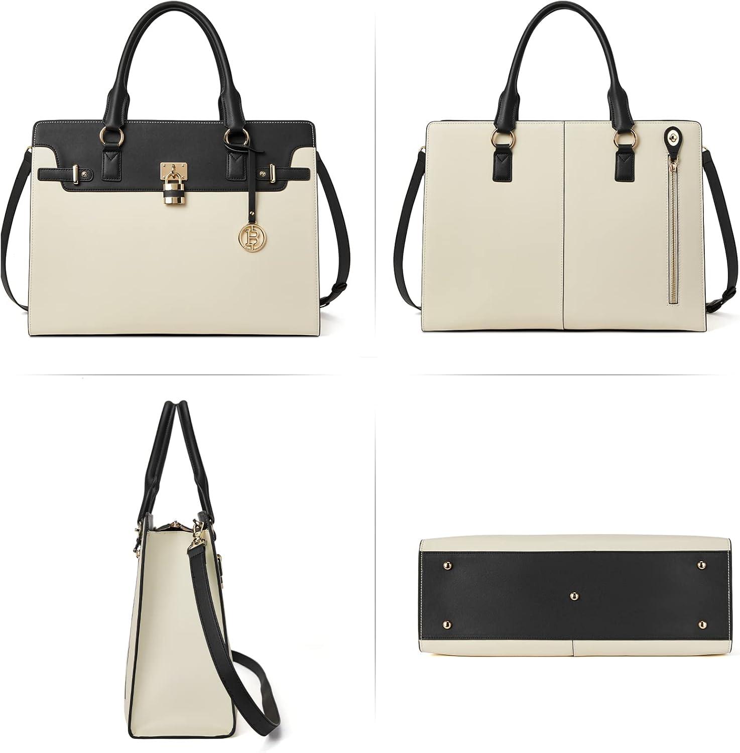 BOSTANTEN Briefcase for Women 15.6 inch Leather Laptop Bag Vintage Slim Lawyer Business Bag Stylish Work Purse(F-beige&black)