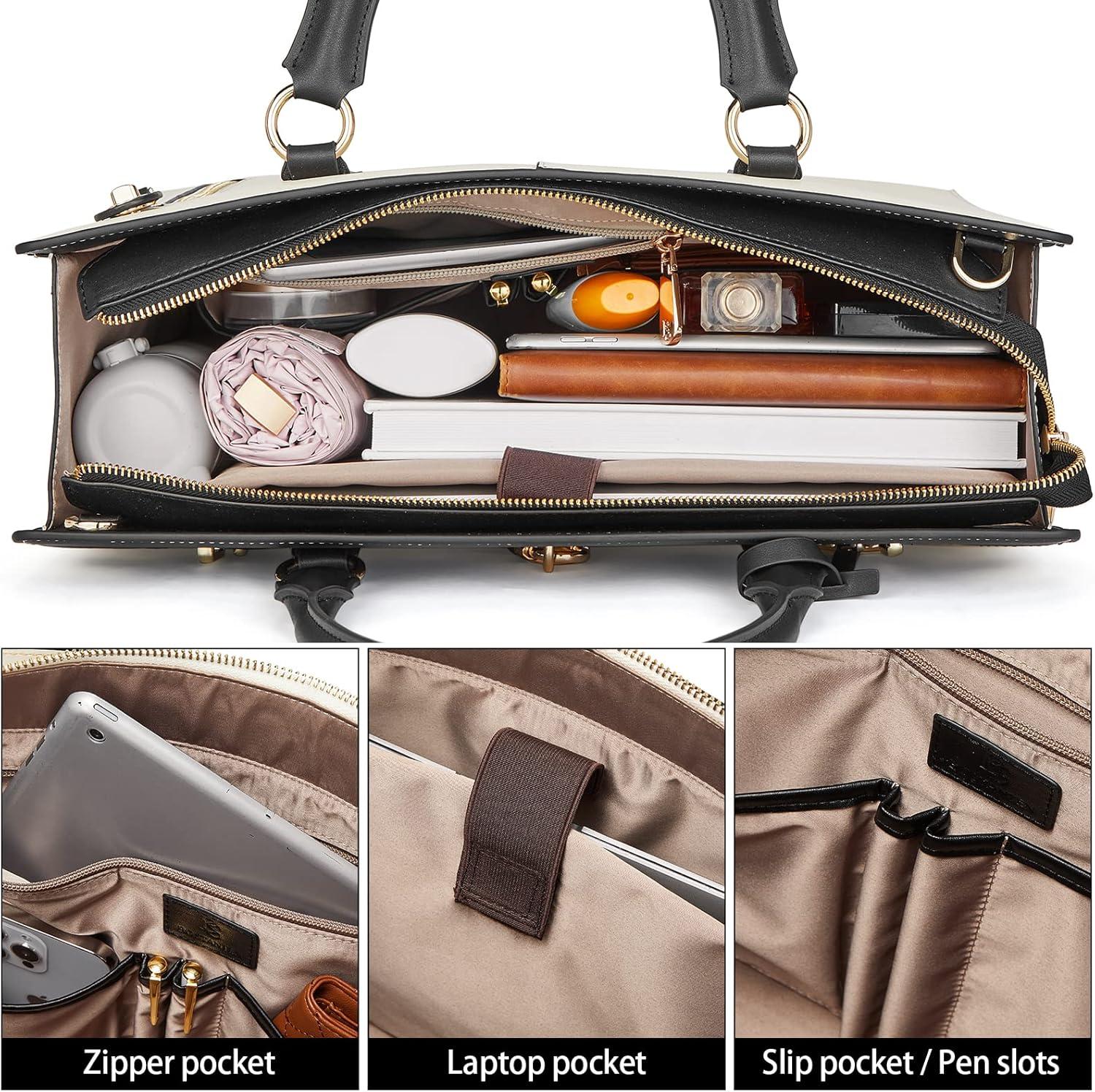 imageBOSTANTEN Briefcase for Women 156 inch Leather Laptop Bag Vintage Slim Lawyer Business Bag Stylish Work PurseFbeigeblack