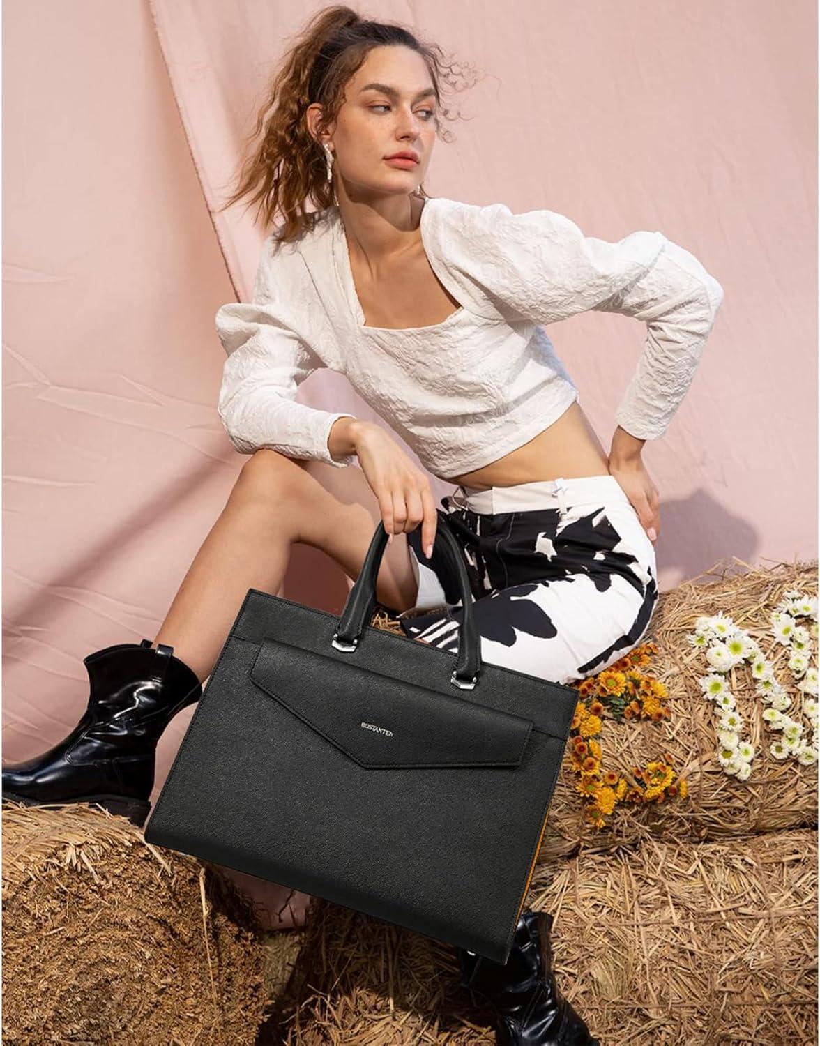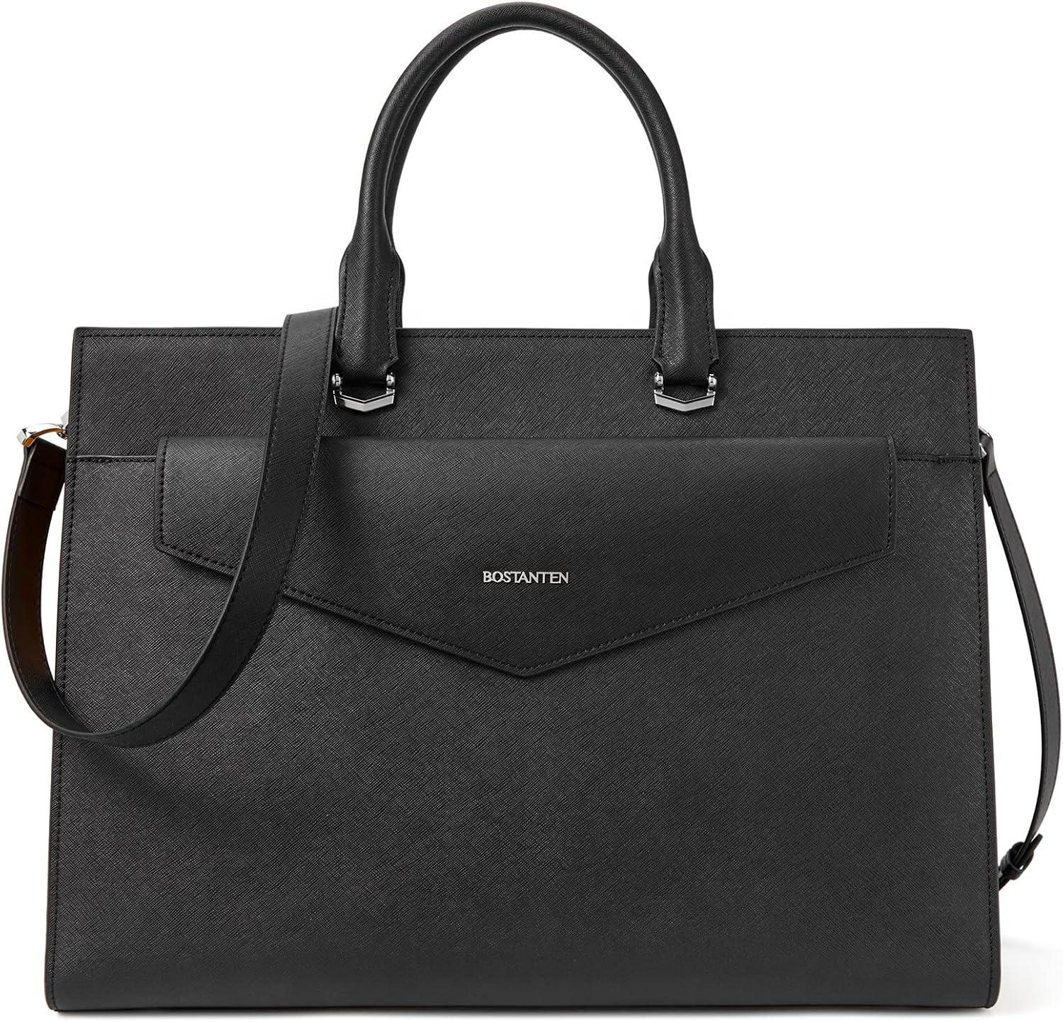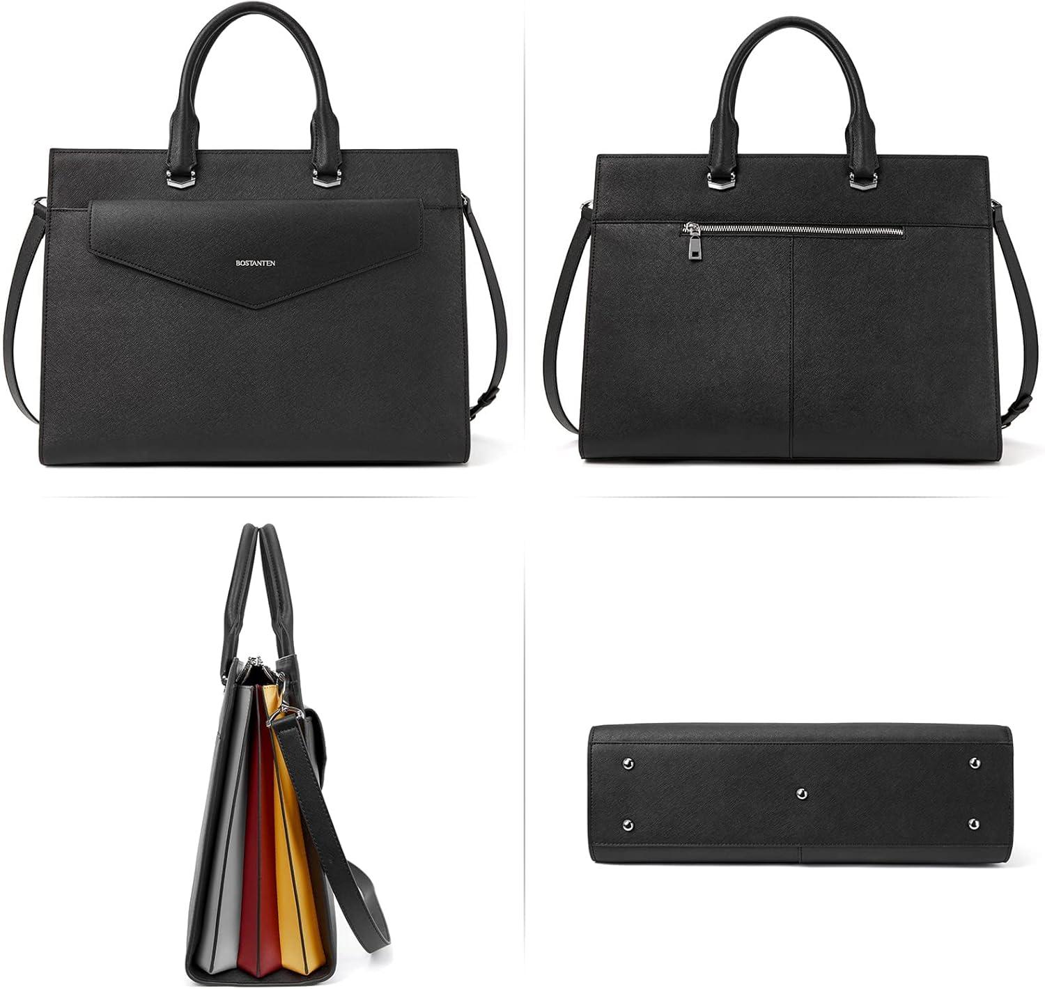 BOSTANTEN Briefcase for Women Laptop Tote 15.6 Inch Genuine Leather Handbag Work Bag Beige(C-black)