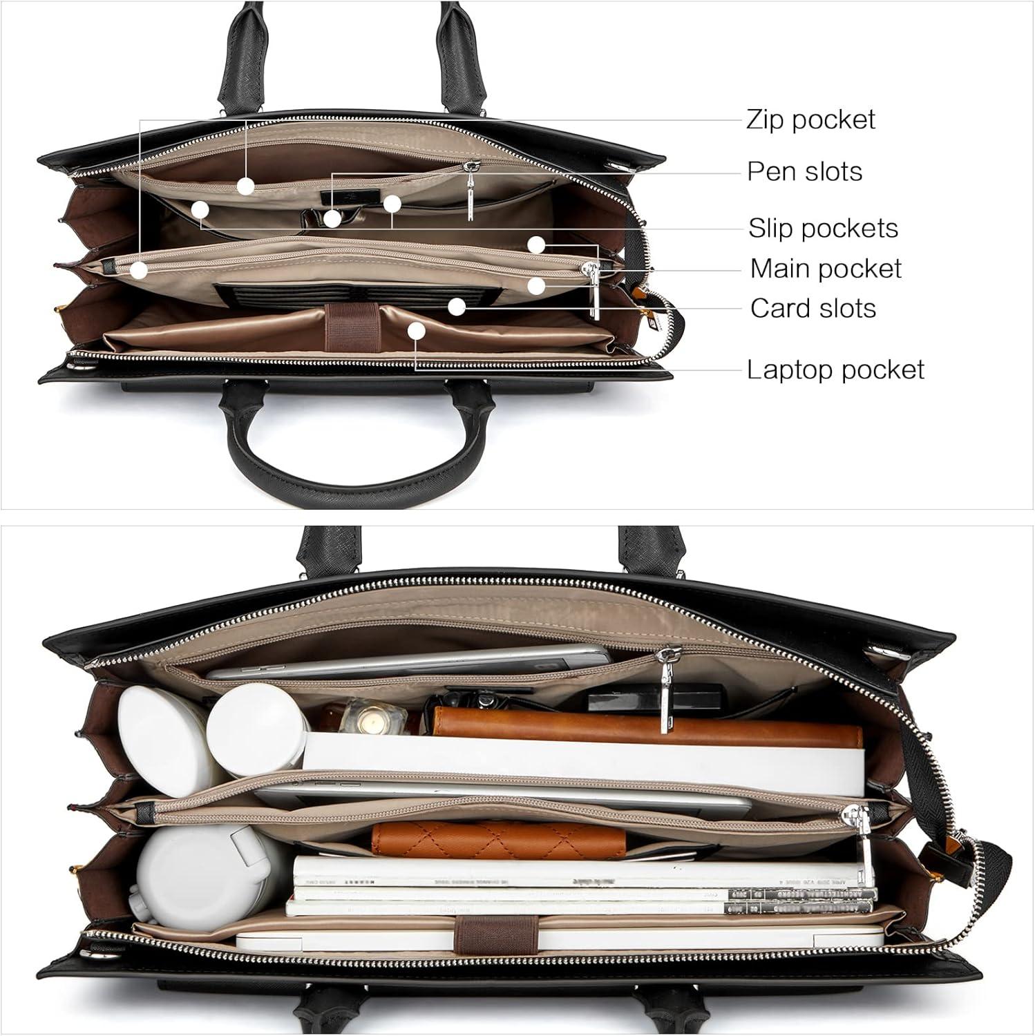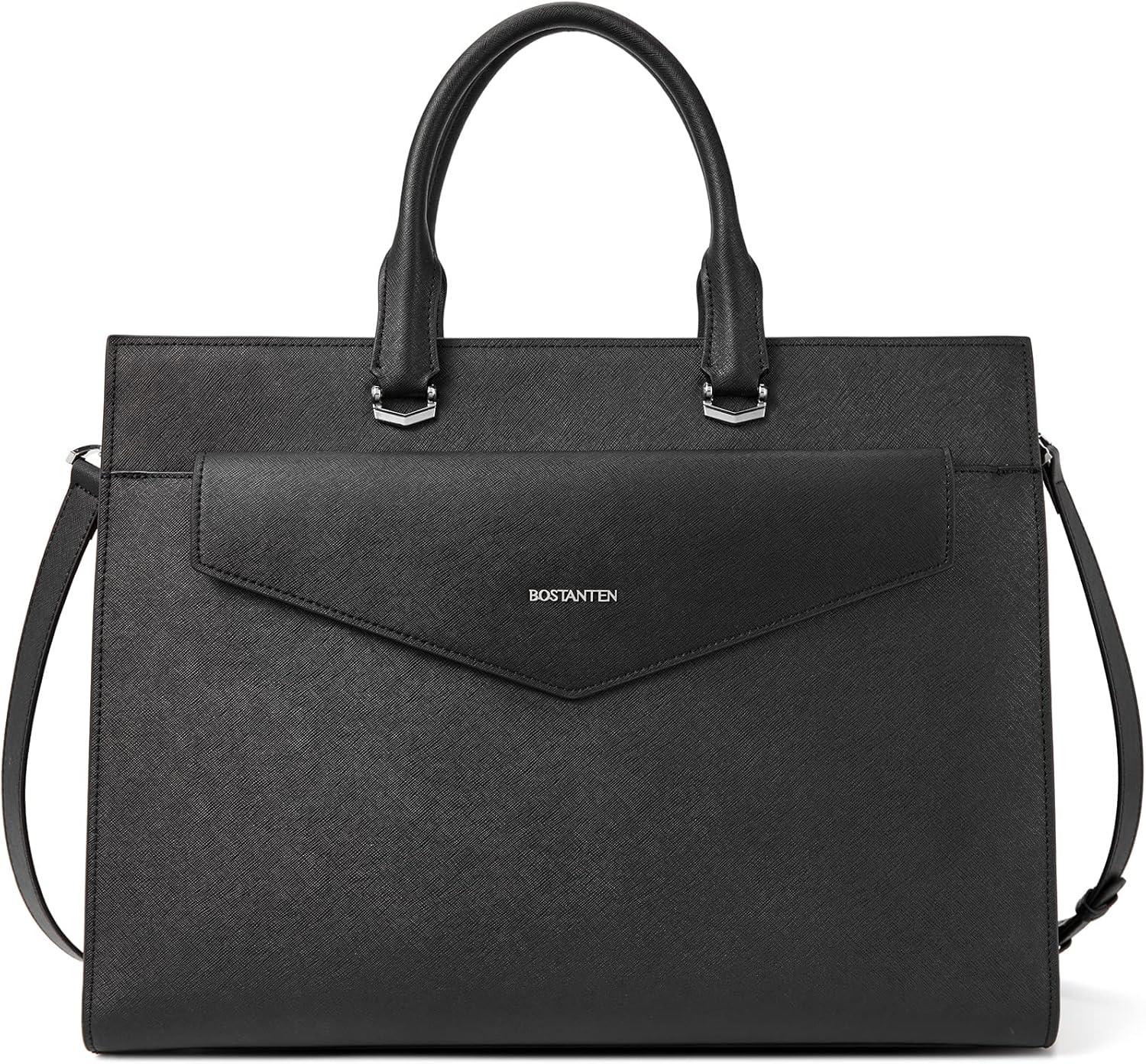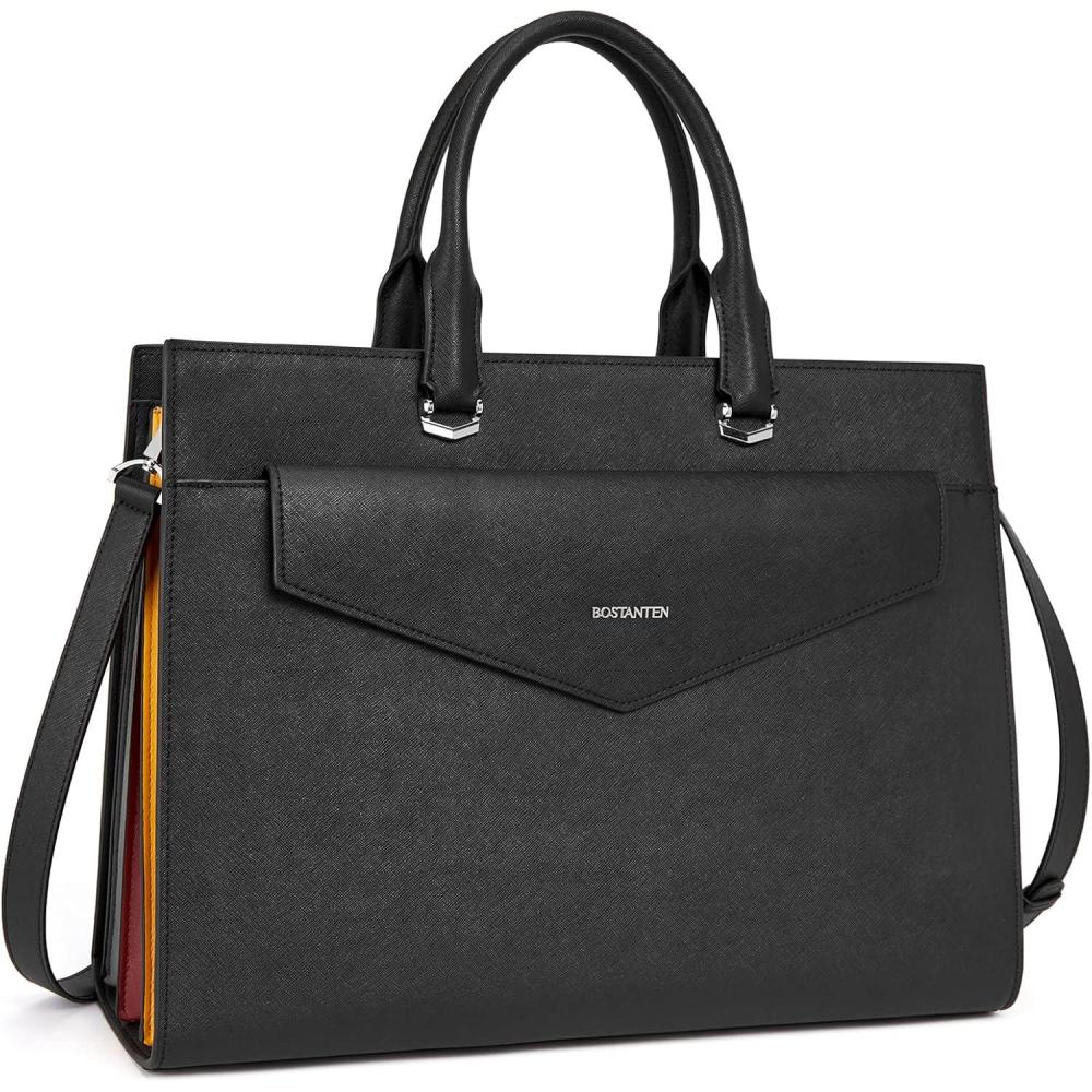 BOSTANTEN Briefcase for Women Laptop Tote 15.6 Inch Genuine Leather Handbag Work Bag Beige(C-black)