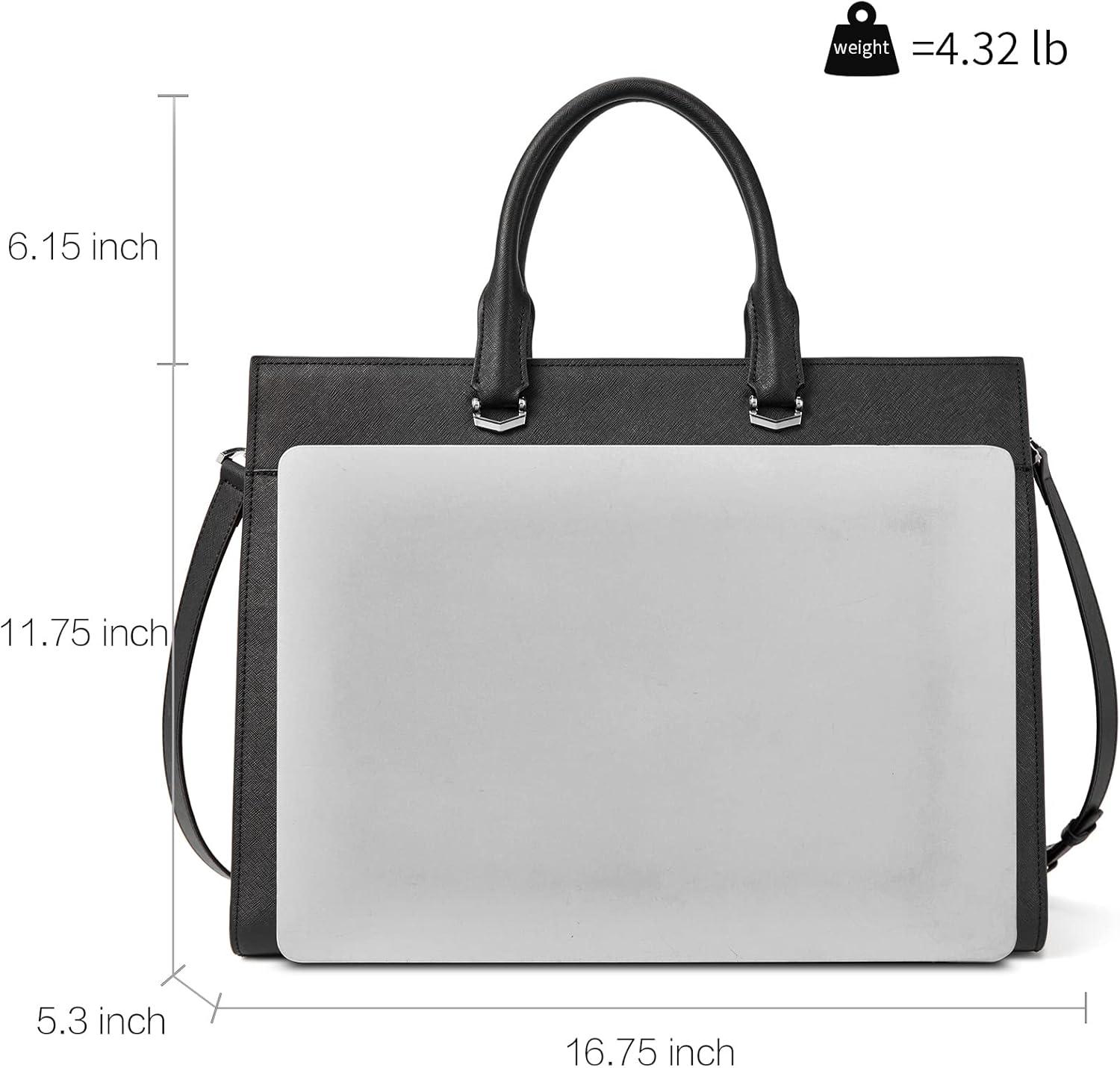 imageBOSTANTEN Briefcase for Women Laptop Tote 156 Inch Genuine Leather Handbag Work Bag BeigeCblack