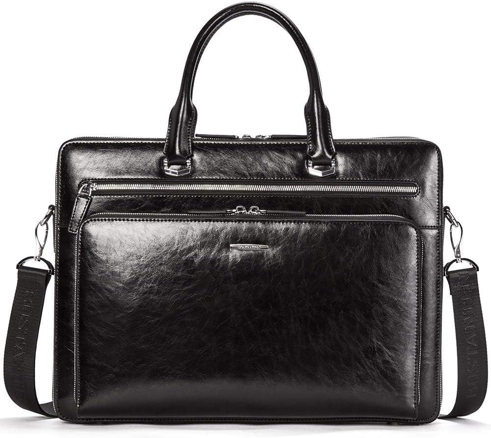 BOSTANTEN Briefcases for Men Messenger Bag Genuine Leather Laptop Bag 15.6 inch Office Work Tote for Buisness Travel(B-black)