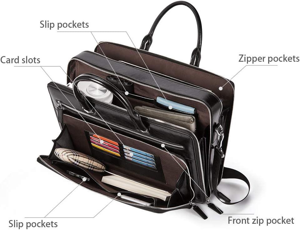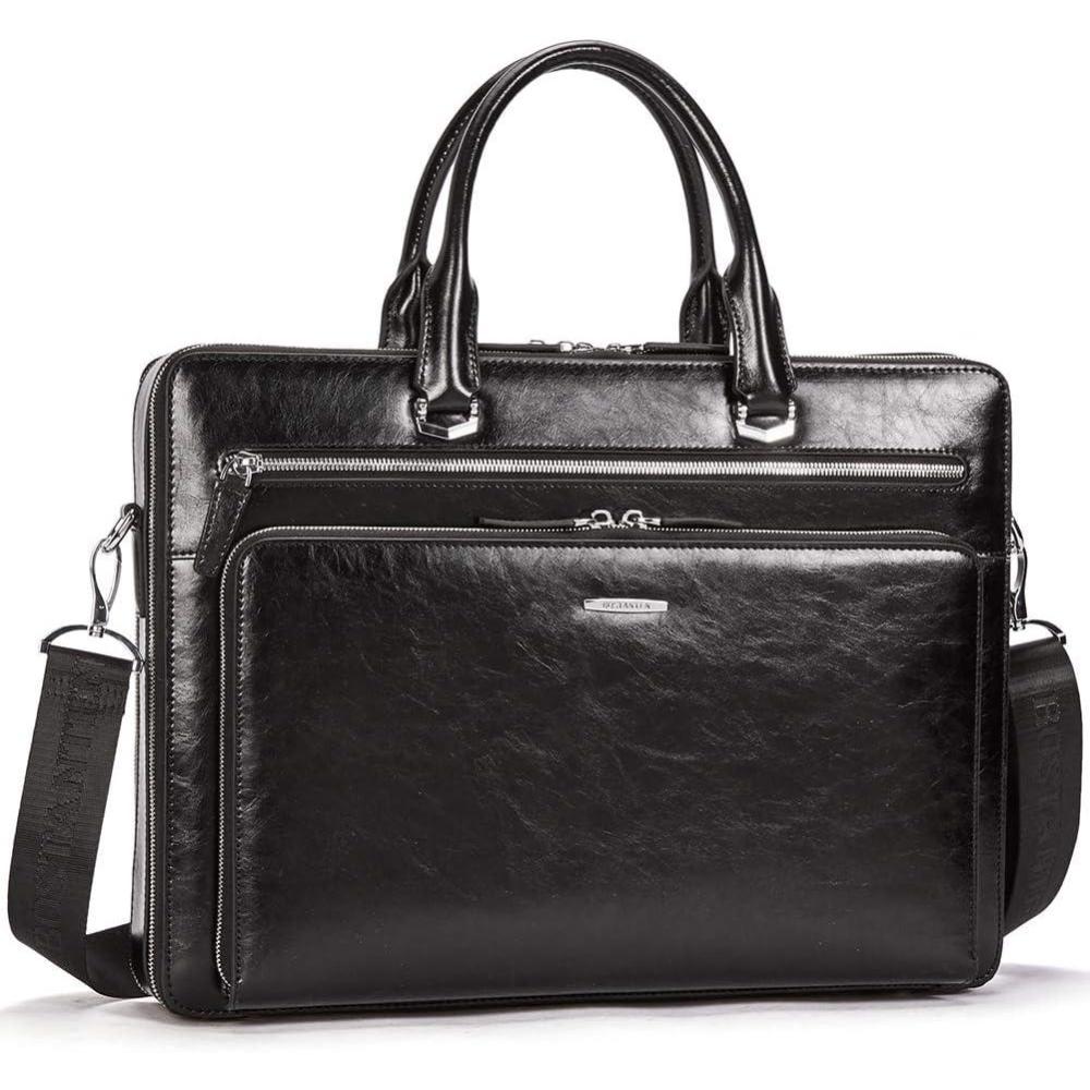 imageBOSTANTEN Briefcases for Men Messenger Bag Genuine Leather Laptop Bag 156 inch Office Work Tote for Buisness TravelBblack