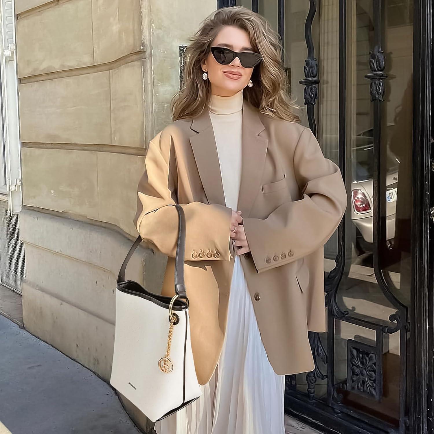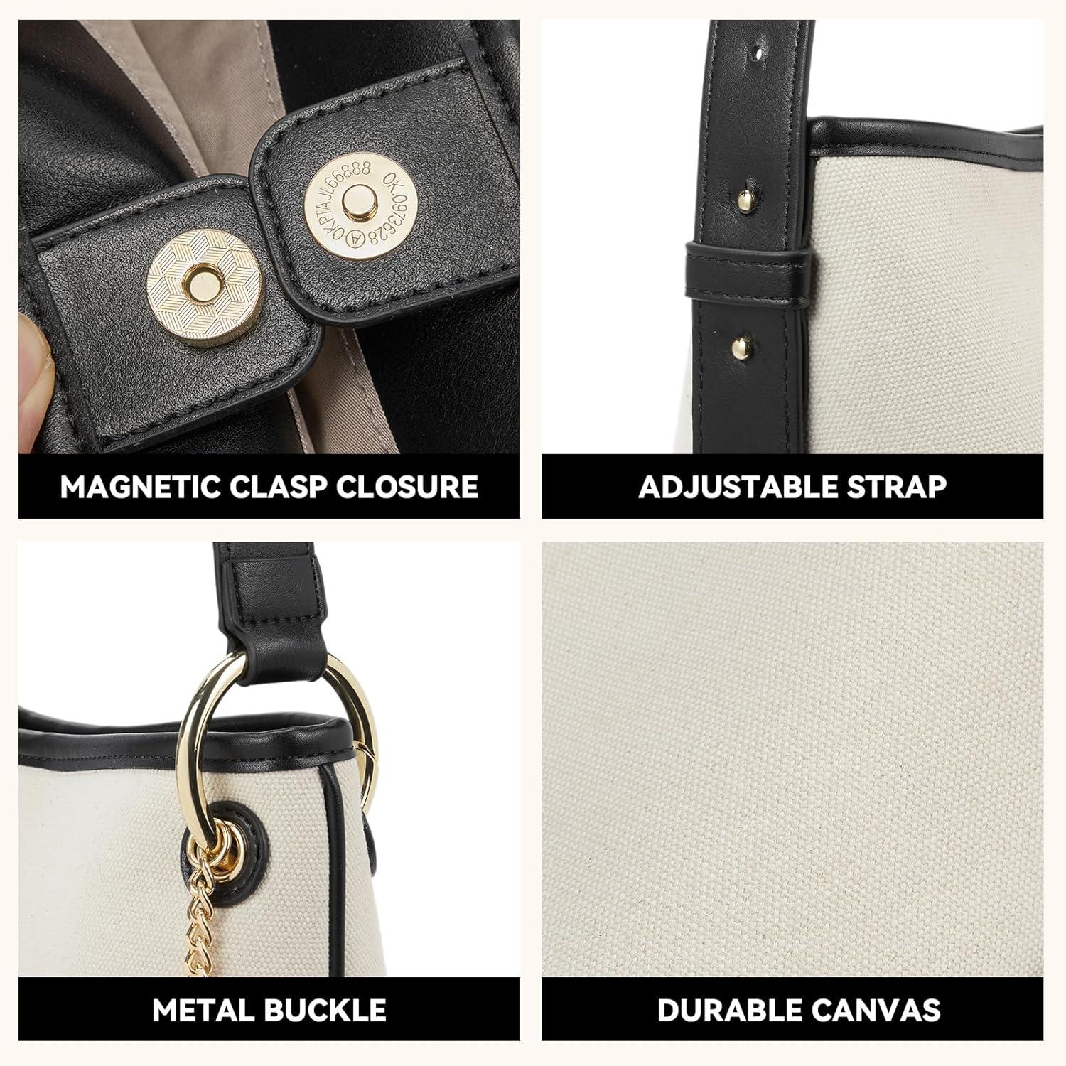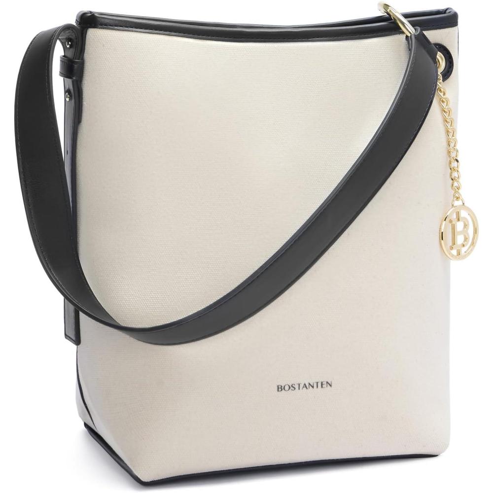 imageBOSTANTEN Bucket Bag Purses for Women Trendy Shoulder Bag Canvas Handbag with Adjustable StrapBlackbeige