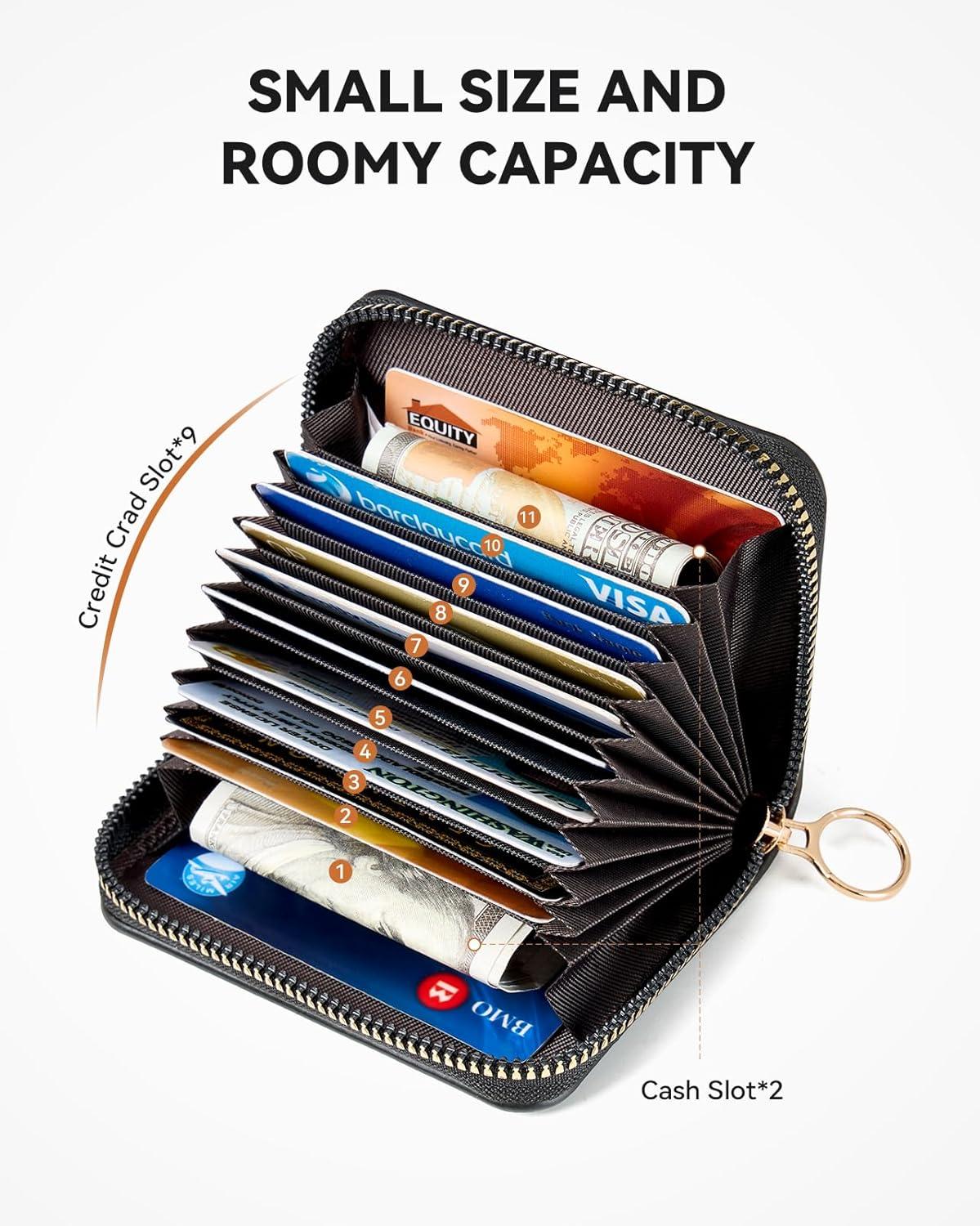 Simplify Storage: This womens wallet has 9 card slots and 2 cash slots. The card wallet can hold all your credit cards and cash, keeping your daily needs organized and secure