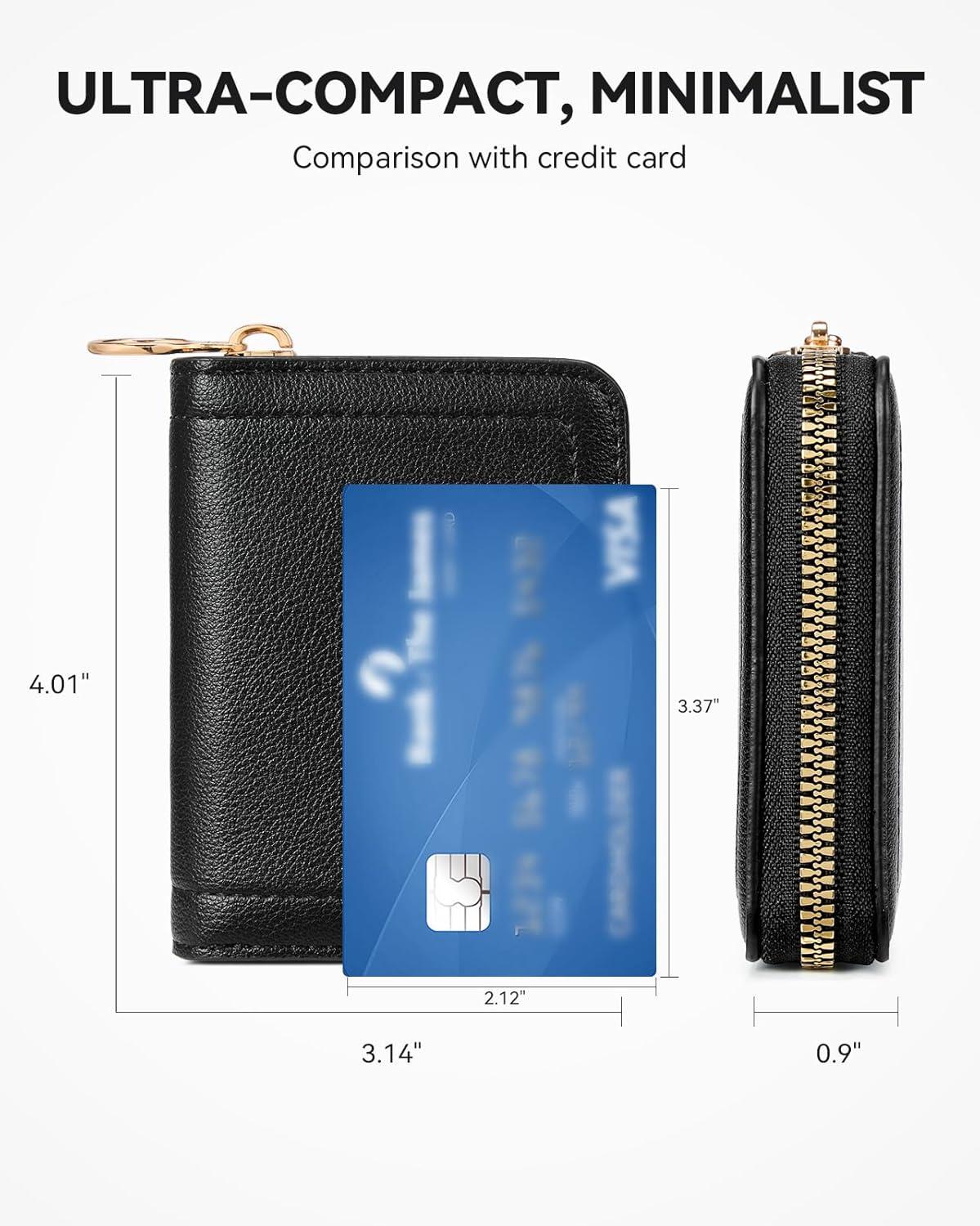 Compact Size: Ours cute credit card holder measuring 4.01'' x 3.14'' x 0.9''. Small size is perfect to fit in your pockets, crossbody bags or handbags. Pack light, travel easy. Ideal for minimalists