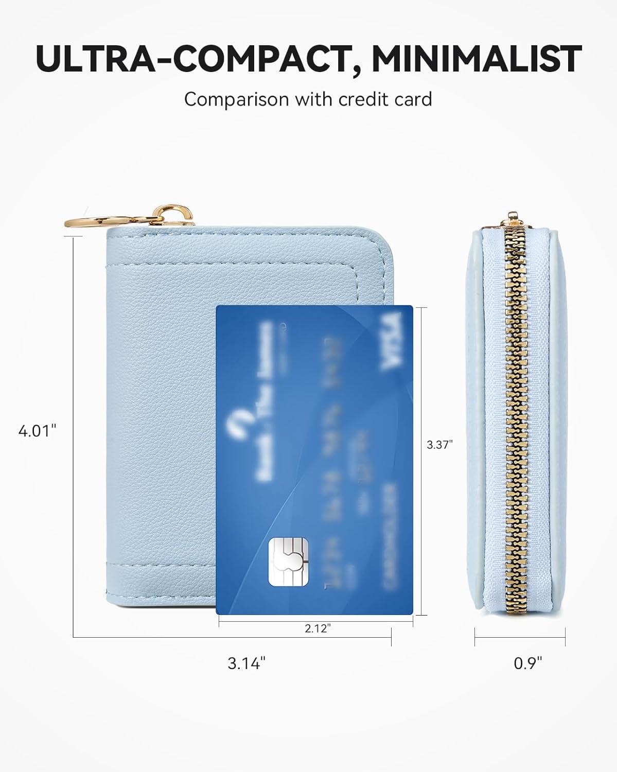 Compact Size: Ours cute credit card holder measuring 4.01'' x 3.14'' x 0.9''. Small size is perfect to fit in your pockets, crossbody bags or handbags. Pack light, travel easy. Ideal for minimalists