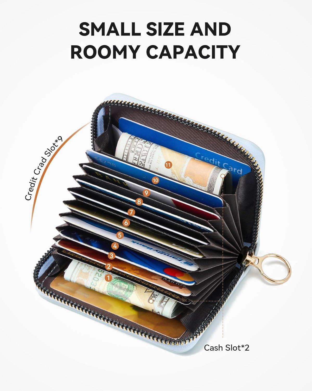 Simplify Storage: This womens wallet has 9 card slots and 2 cash slots. The card wallet can hold all your credit cards and cash, keeping your daily needs organized and secure