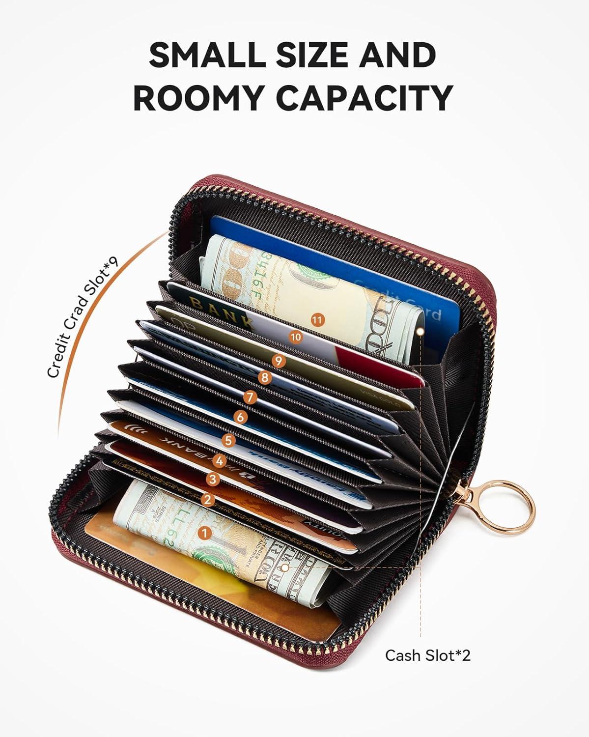 Simplify Storage: This womens wallet has 9 card slots and 2 cash slots. The card wallet can hold all your credit cards and cash, keeping your daily needs organized and secure