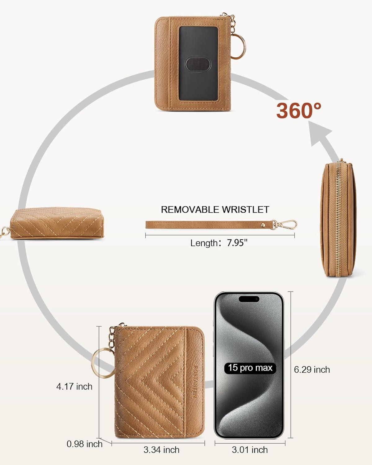 Perfect Size and Compact: Size 4.17'' x 3.34'' x 0.98'' inches, net weight 0.22 lbs. It is a palm-sized compact leather card holder and fits nicely into small bags or purses. Our card wallet has a hooked wrist strap to help you easily find it and free up your hands. The keychain you attached your keys to it and haven’t misplaced your keys yet one less thing to grab in the morning. So you can quickly throw it in your pocket and run to the store.