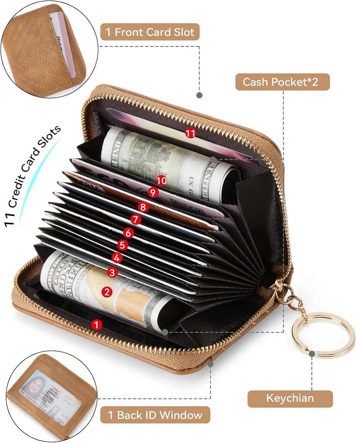 Multi-Slots Card Case: The keychain wallet has 14 card slots in an accordion design for easy access to credit cards, and an ID window on the outside for your ID photo. Your debit card, point card, driver's license, folded cash, etc can also be held in the mini keychain card holder with enough room. Compact size offers a smart solution to your basic needs If you do not want carry much or do not like bulky card holder wallet.