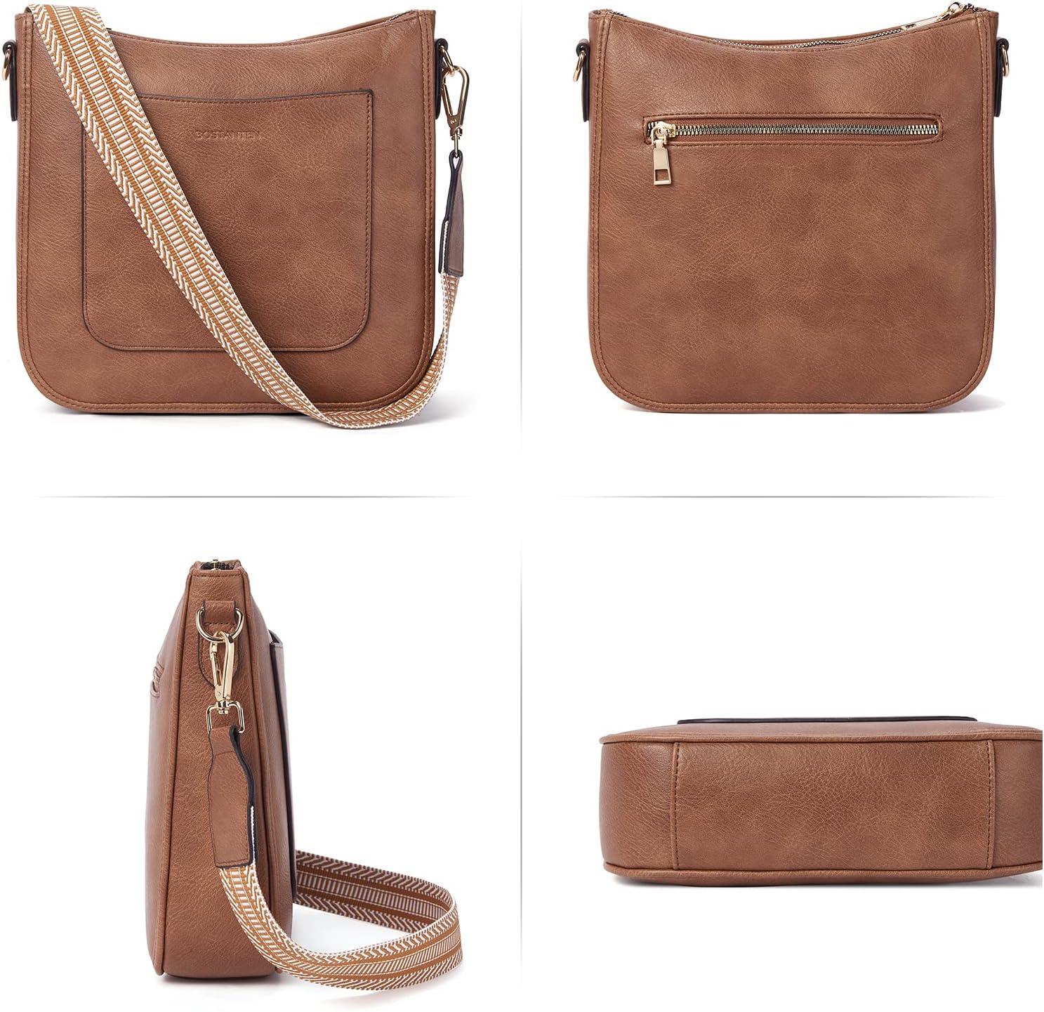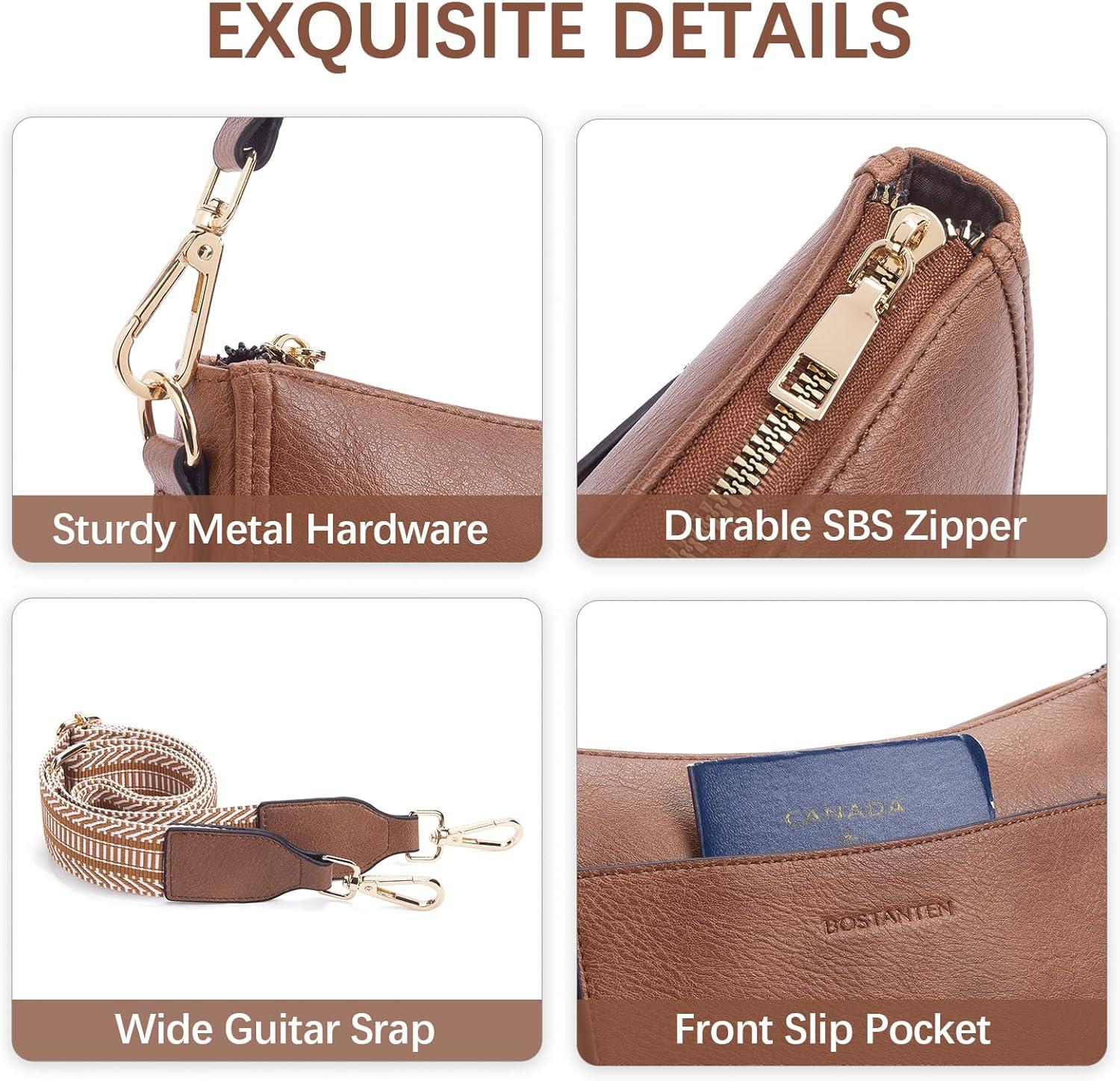 BOSTANTEN Crossbody Bags for Women Trendy Vegan Leather Hobo Handbags Fashion Shoulder Purse with Adjustable Guitar Strap(A01-retro Brown)