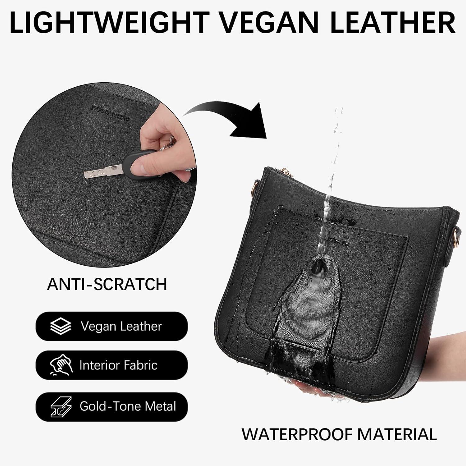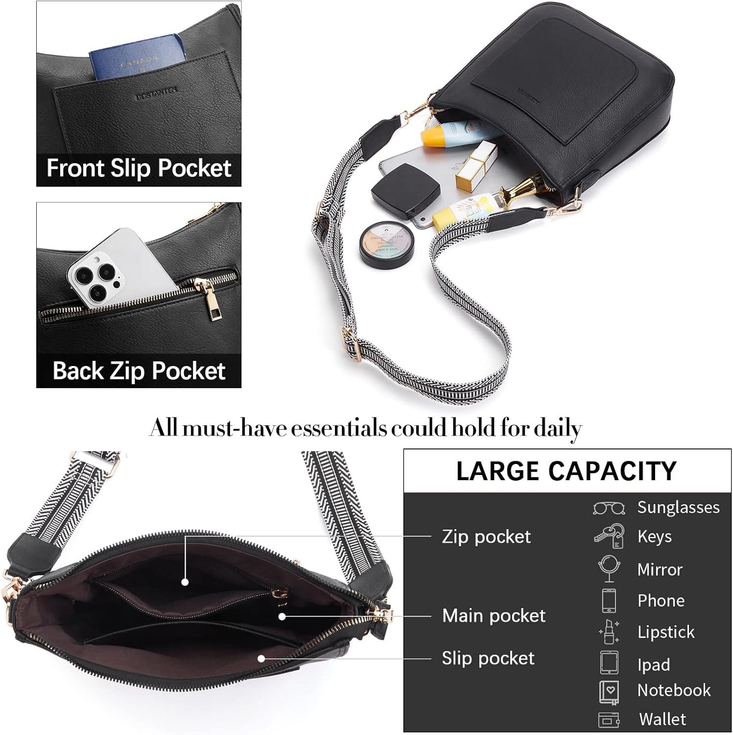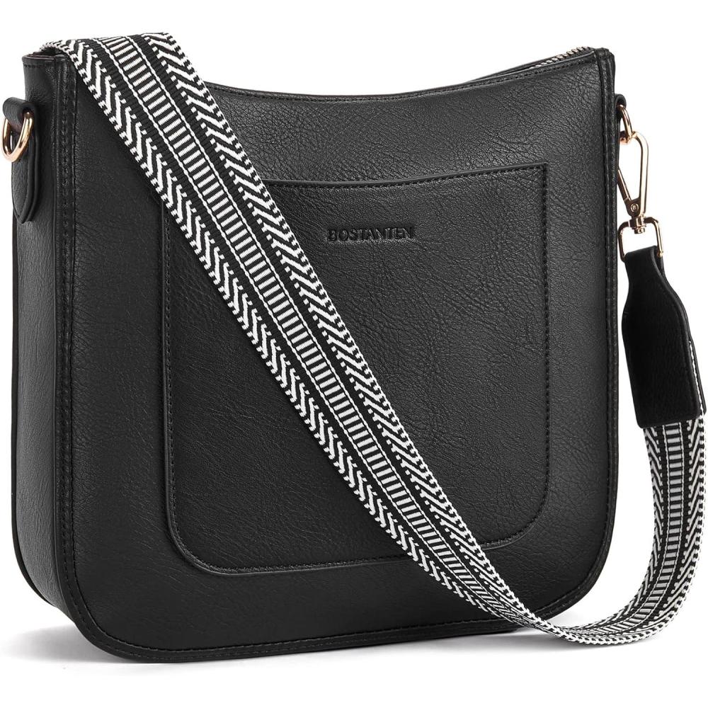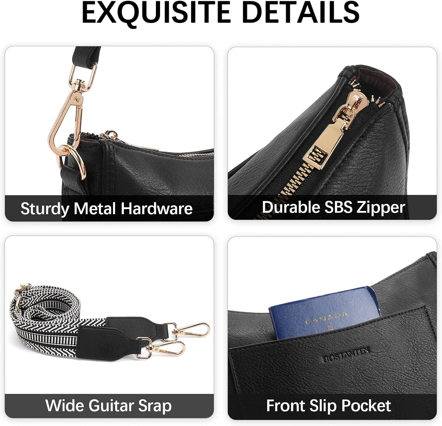 BOSTANTEN Crossbody Bags for Women Trendy Vegan Leather Hobo Handbags Fashion Shoulder Purse with Adjustable Guitar Strap(A02-black)