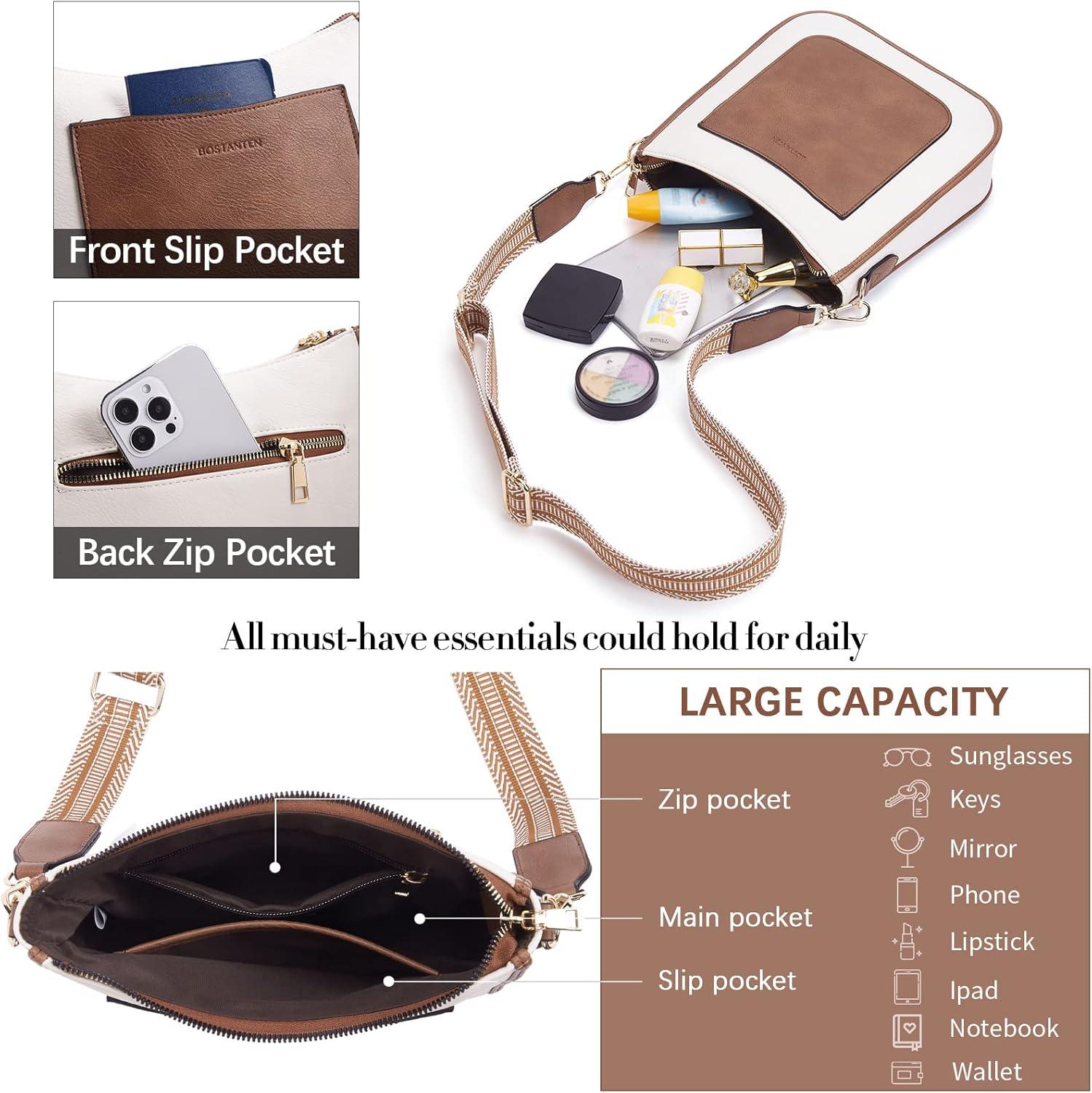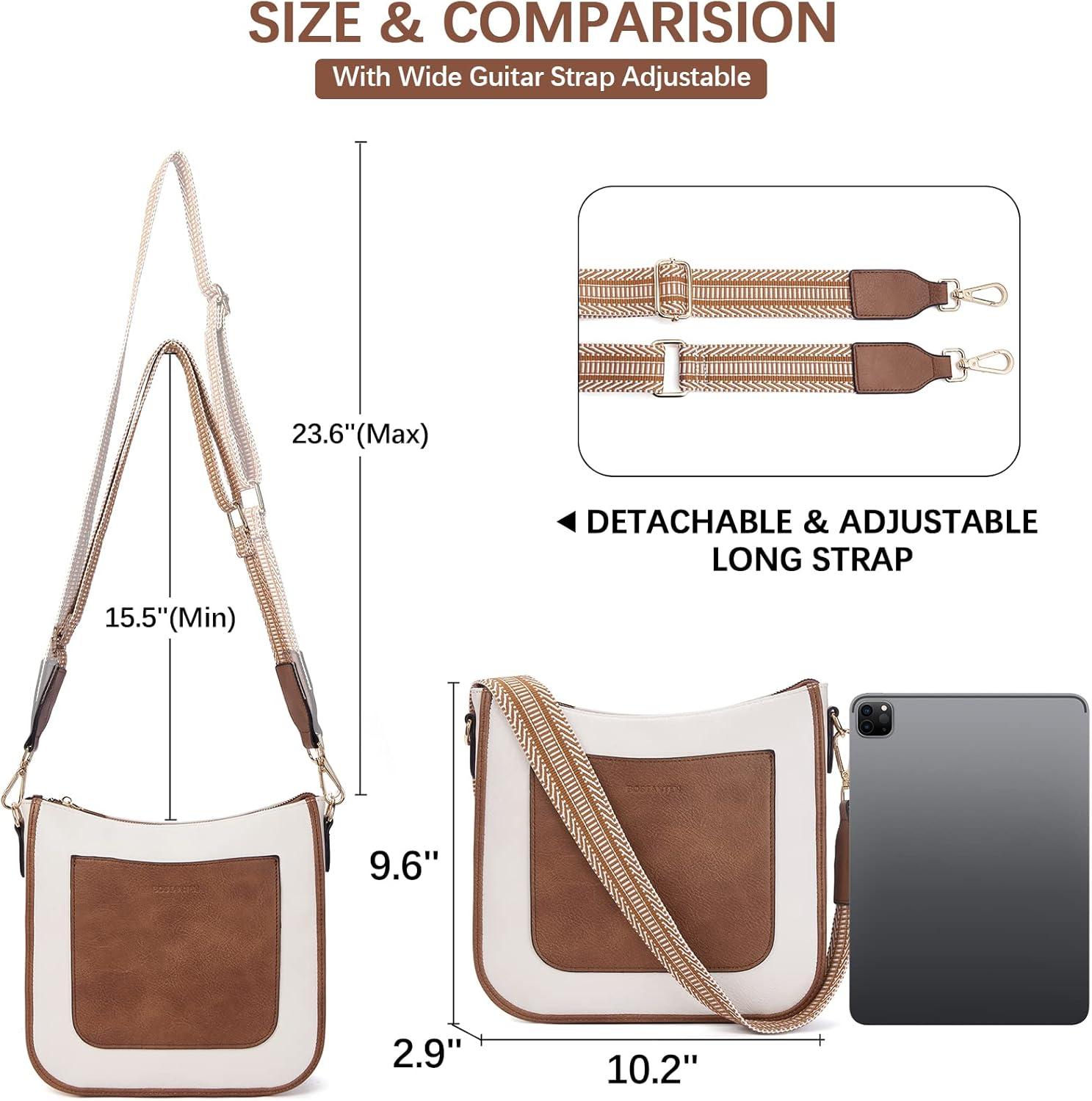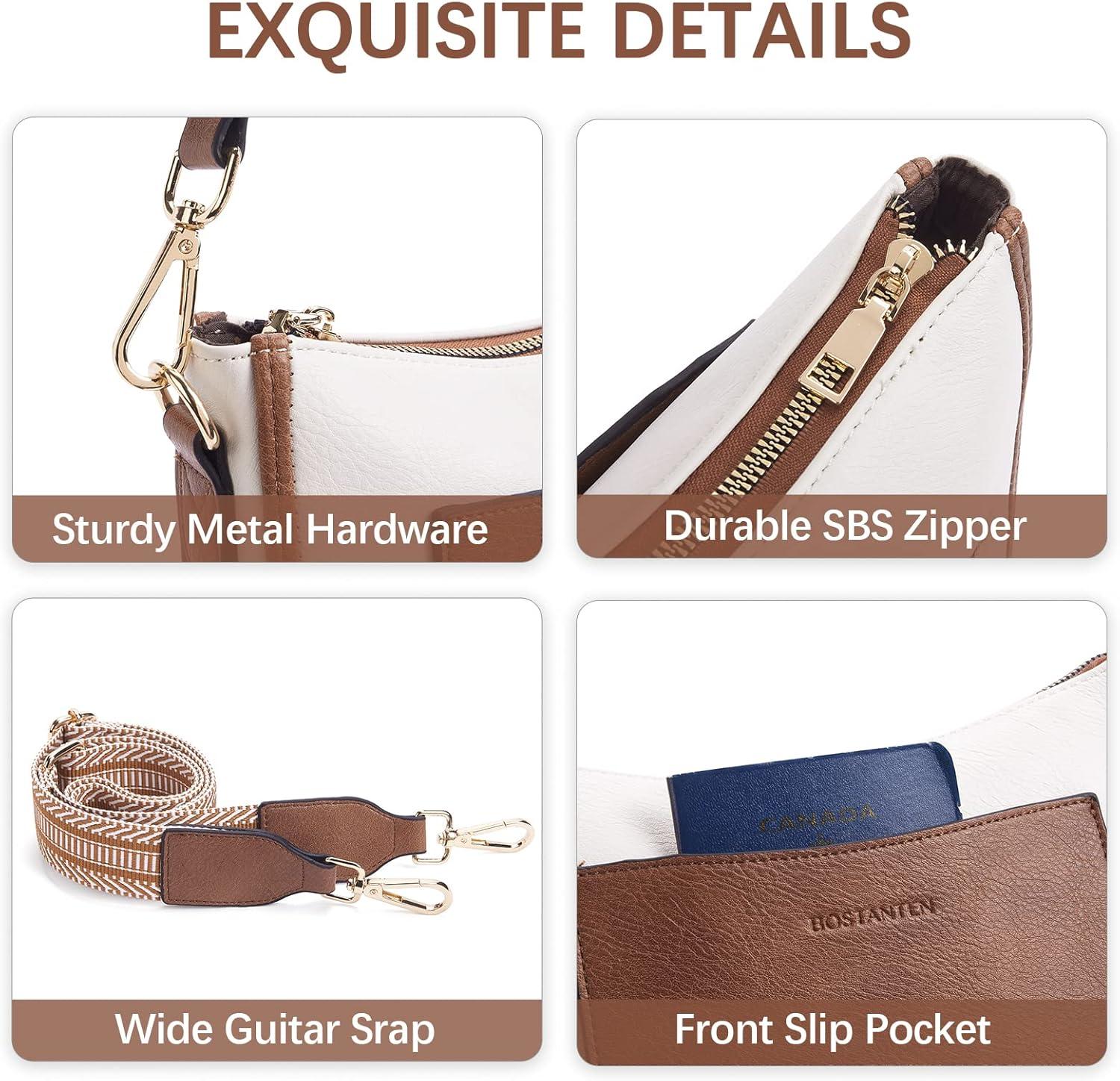 BOSTANTEN Crossbody Bags for Women Trendy Vegan Leather Hobo Handbags Fashion Shoulder Purse with Adjustable Guitar Strap(A05-brown With Beige)