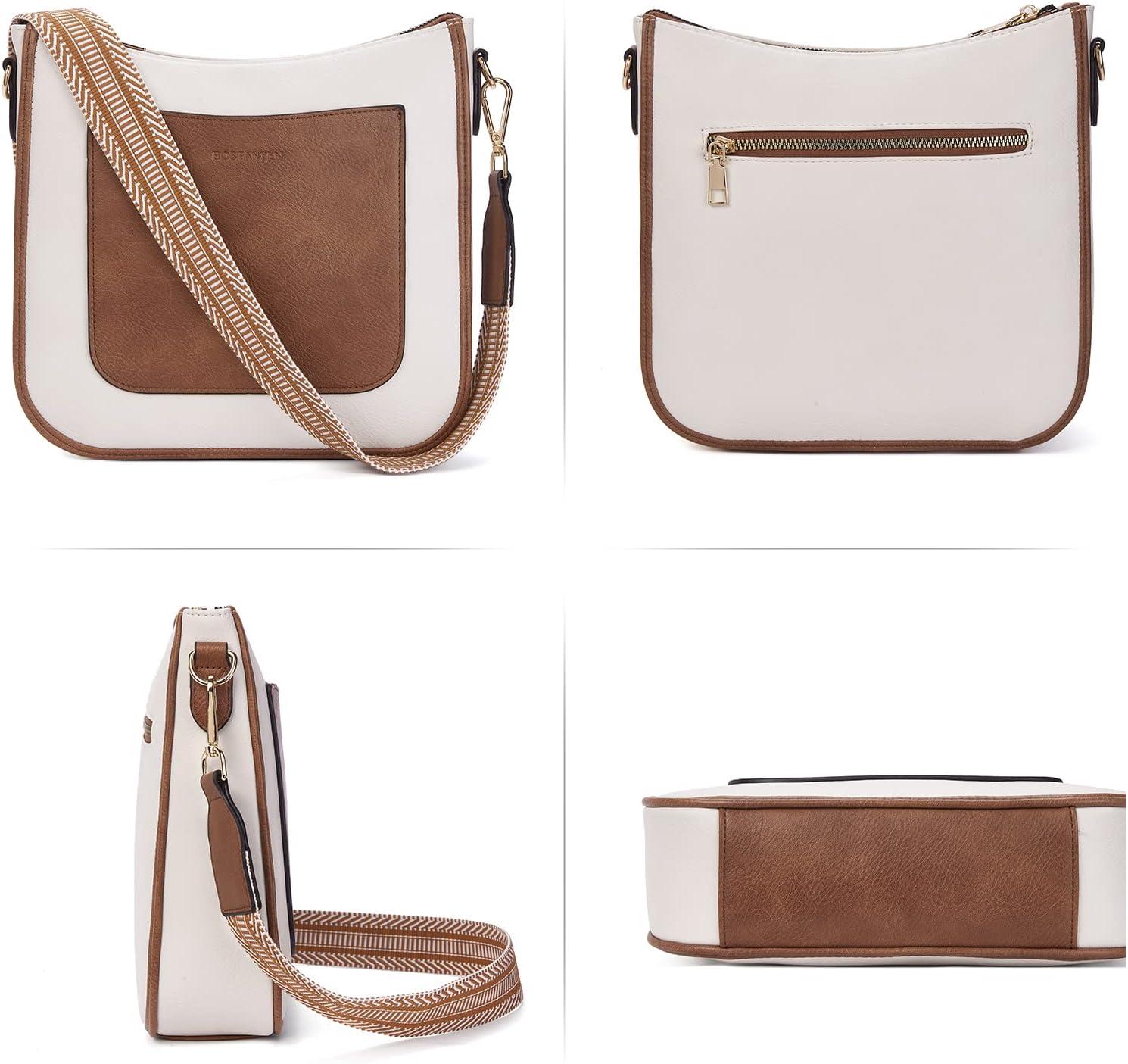 imageBOSTANTEN Crossbody Bags for Women Trendy Vegan Leather Hobo Handbags Fashion Shoulder Purse with Adjustable Guitar StrapA05brown With Beige