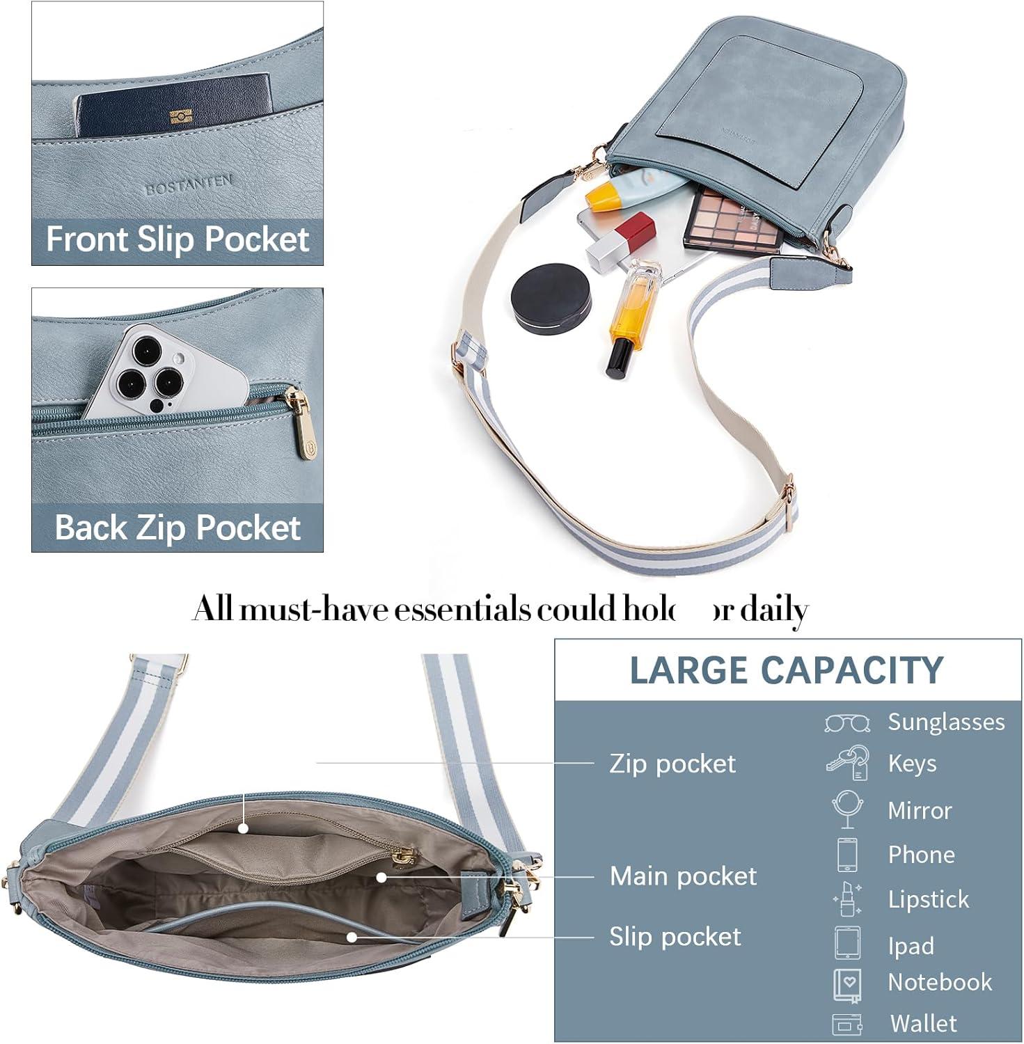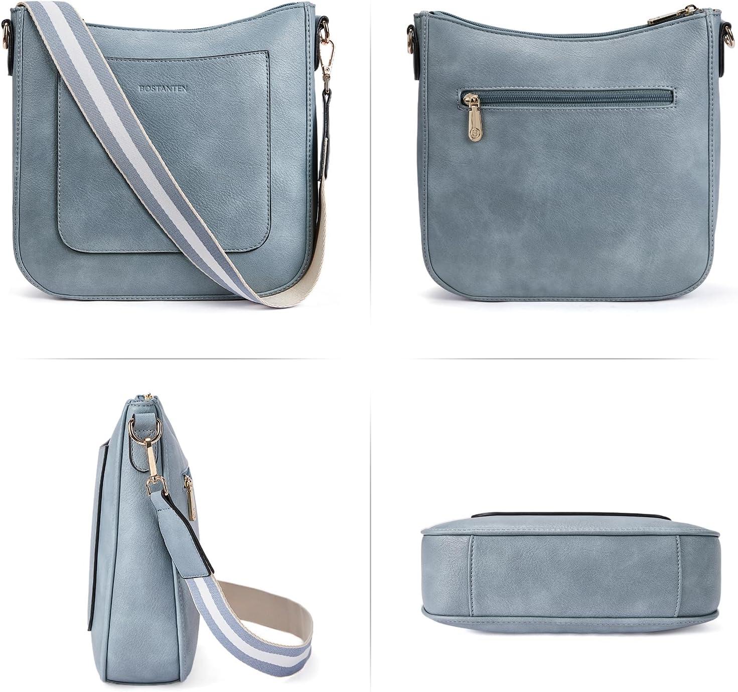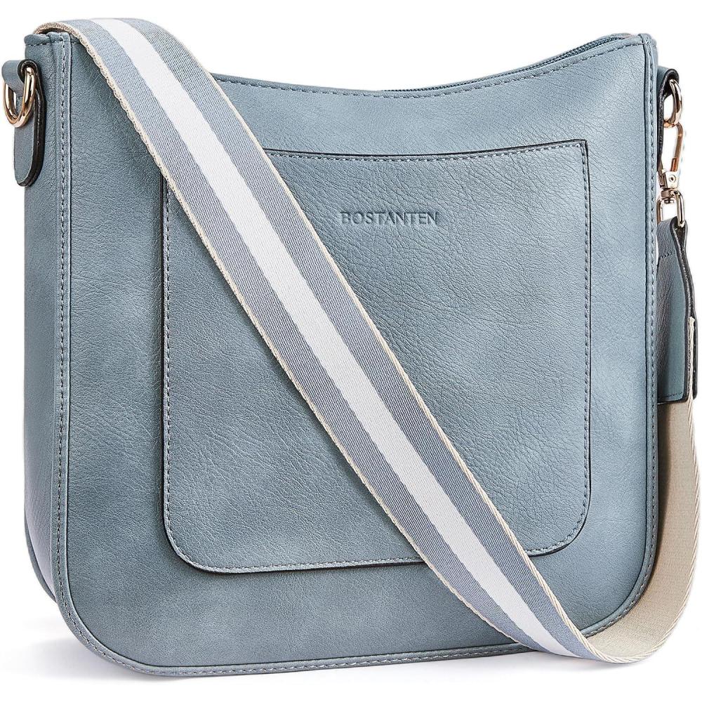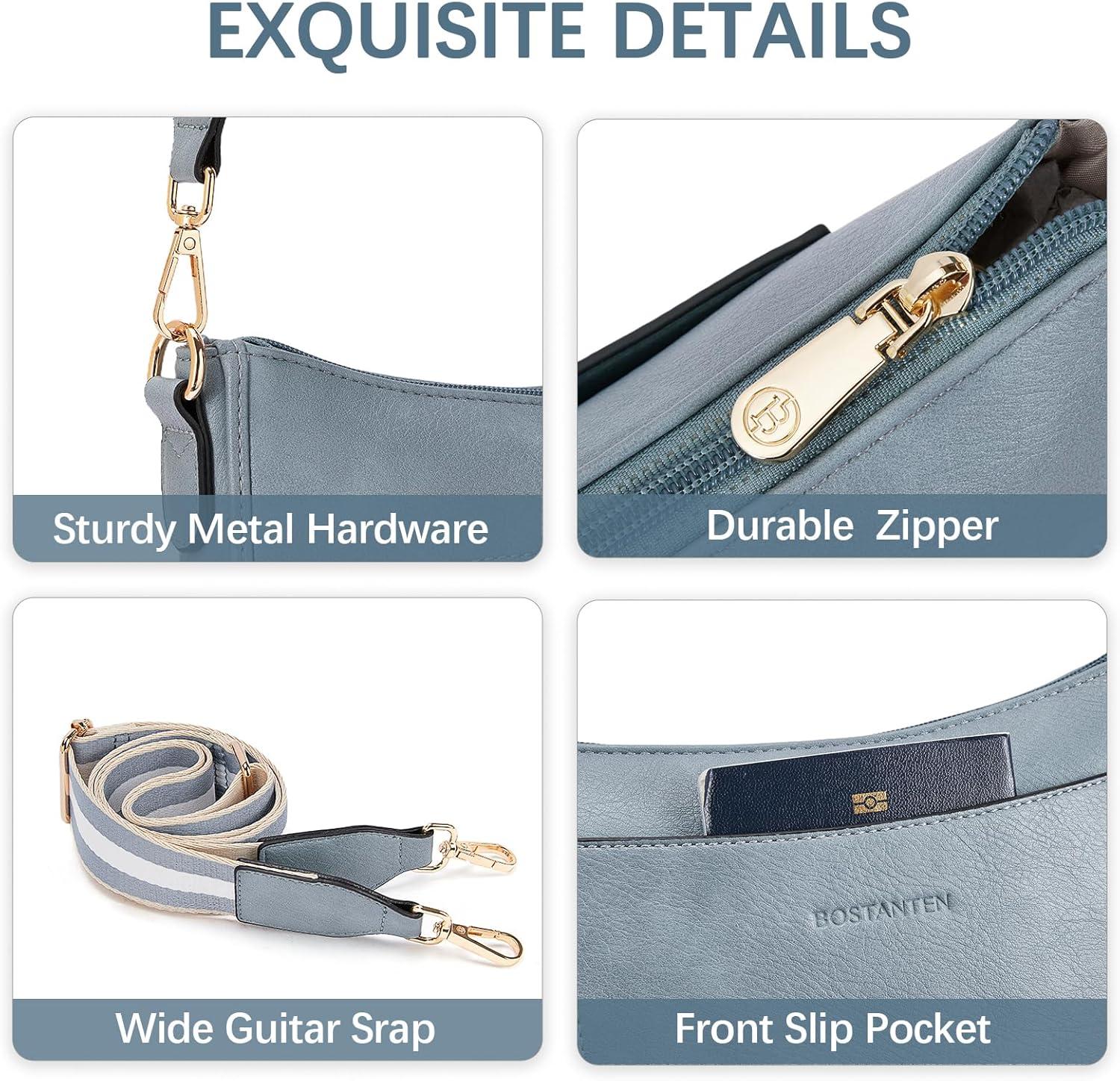 BOSTANTEN Crossbody Bags for Women Trendy Vegan Leather Hobo Handbags Fashion Shoulder Purse with Adjustable Guitar Strap(A10-denim Blue)