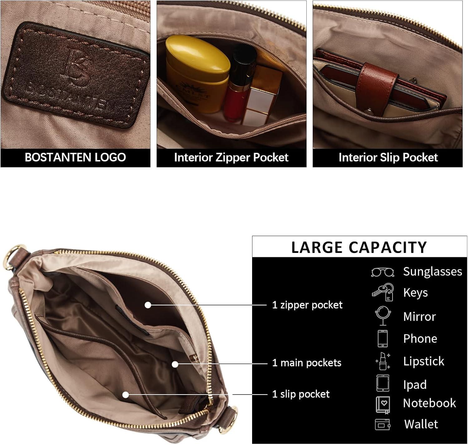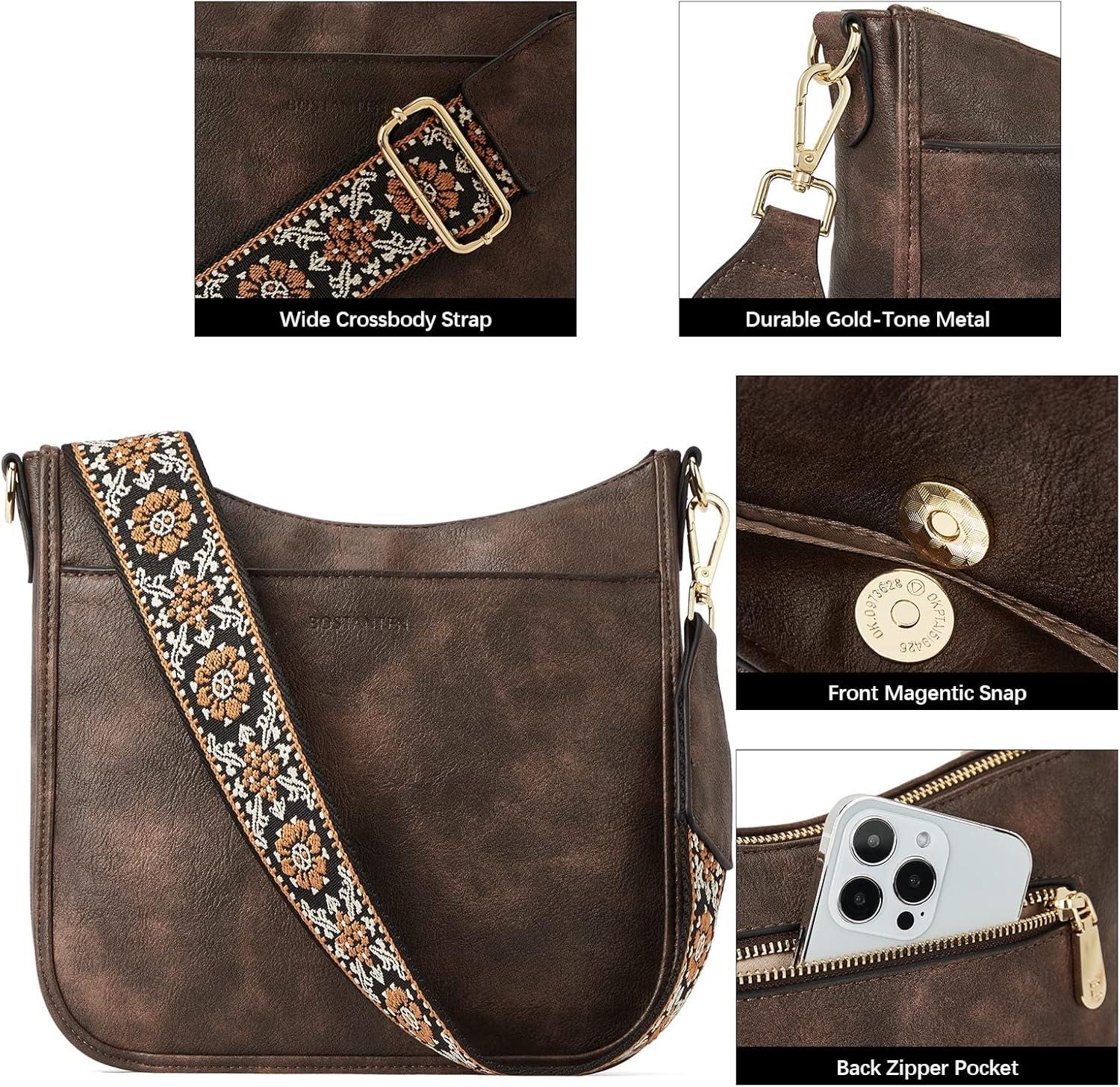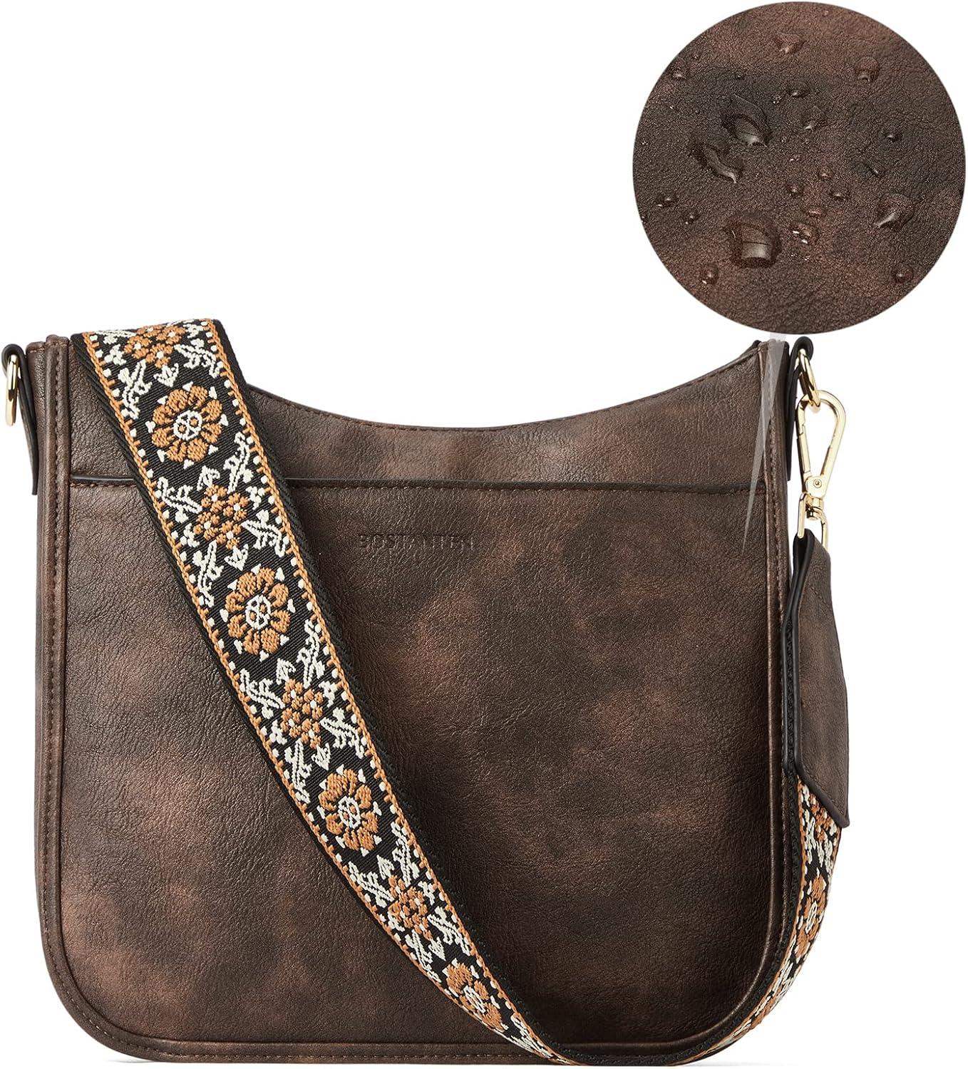 BOSTANTEN Crossbody Bags for Women Trendy Vegan Leather Hobo Purses Shoulder Handbags With Wide Shoulder Strap(A02-coffee)