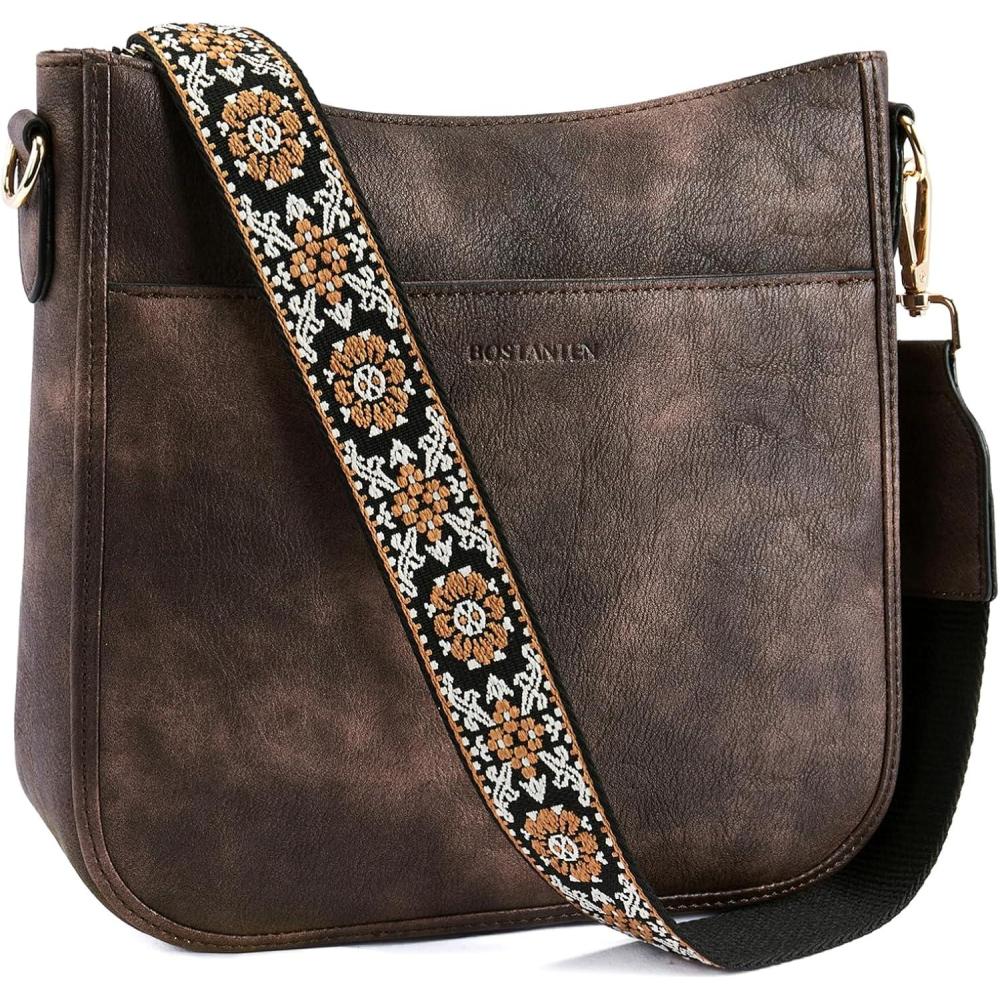 BOSTANTEN Crossbody Bags for Women Trendy Vegan Leather Hobo Purses Shoulder Handbags With Wide Shoulder Strap(A01-brown)