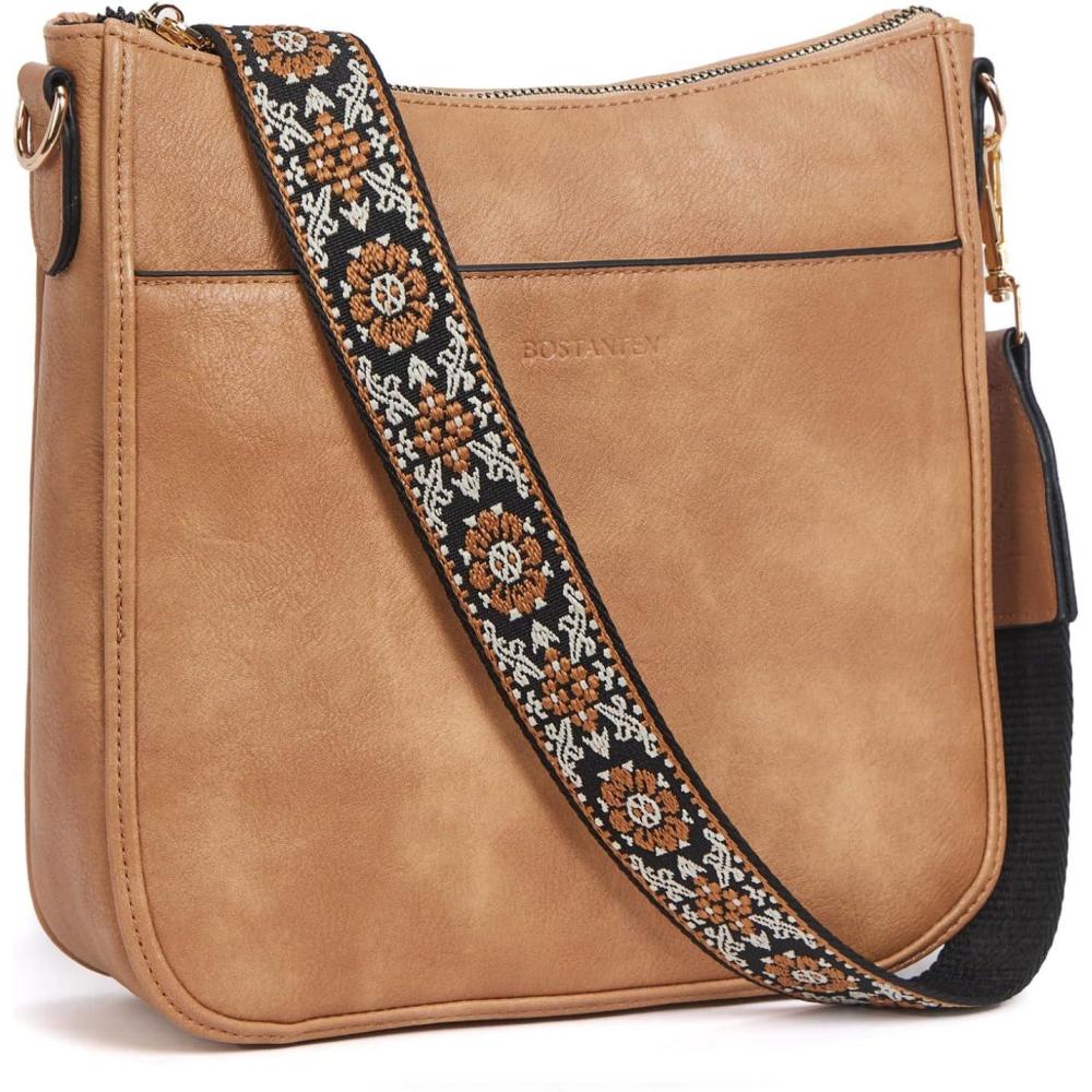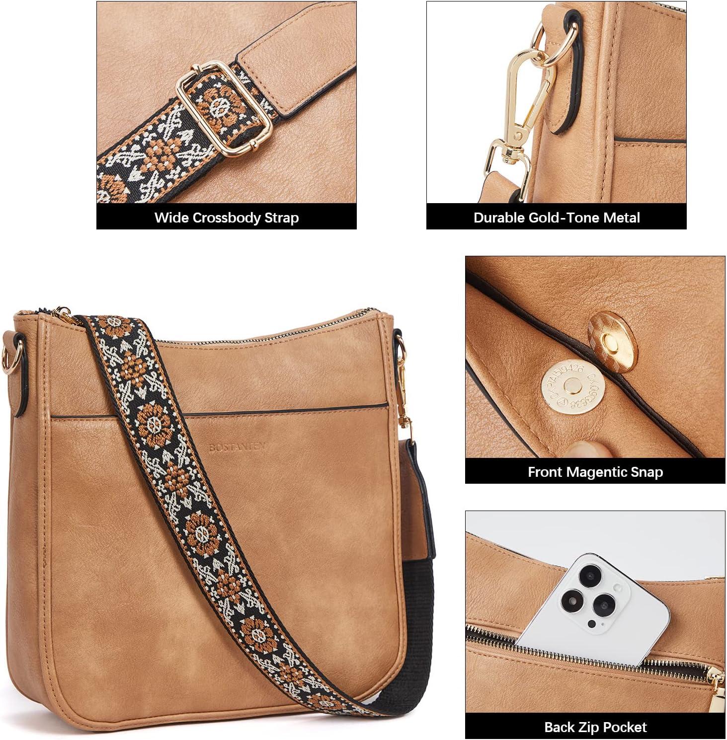 BOSTANTEN Crossbody Bags for Women Trendy Vegan Leather Hobo Purses Shoulder Handbags With Wide Shoulder Strap(A05-camel Brown)