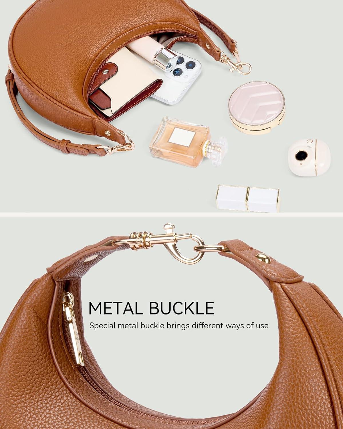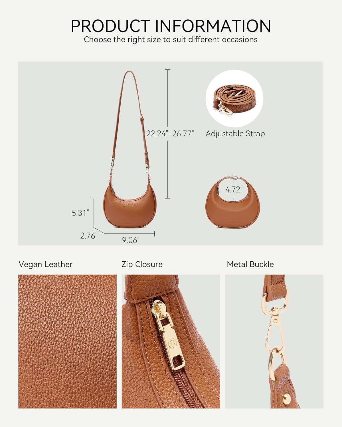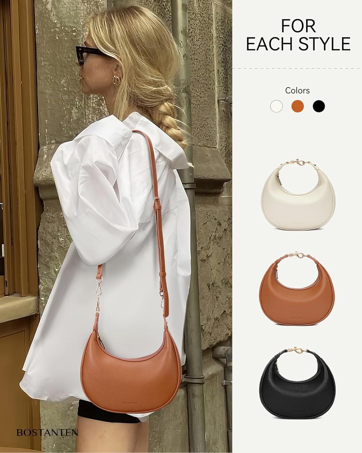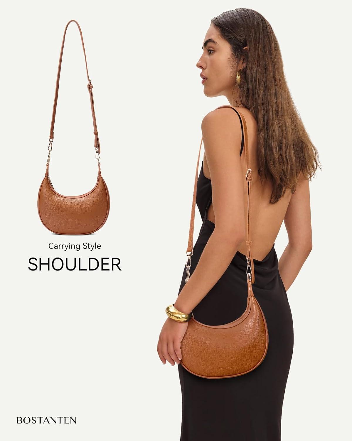 imageBOSTANTEN Crossbody Purse Small Crescent Shoulder Bags for Women Trendy Hobo Clutch Handbag Removable StrapBrown