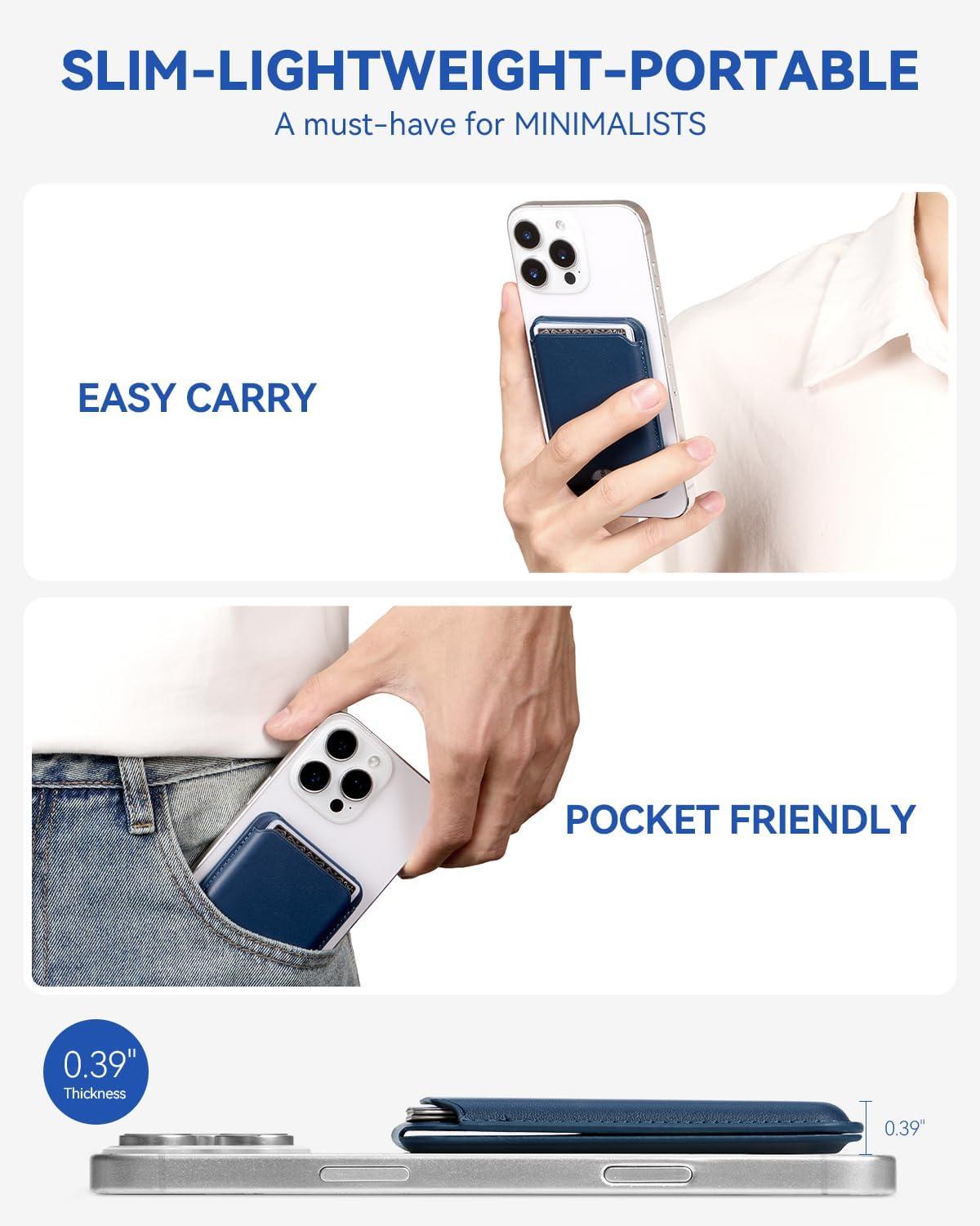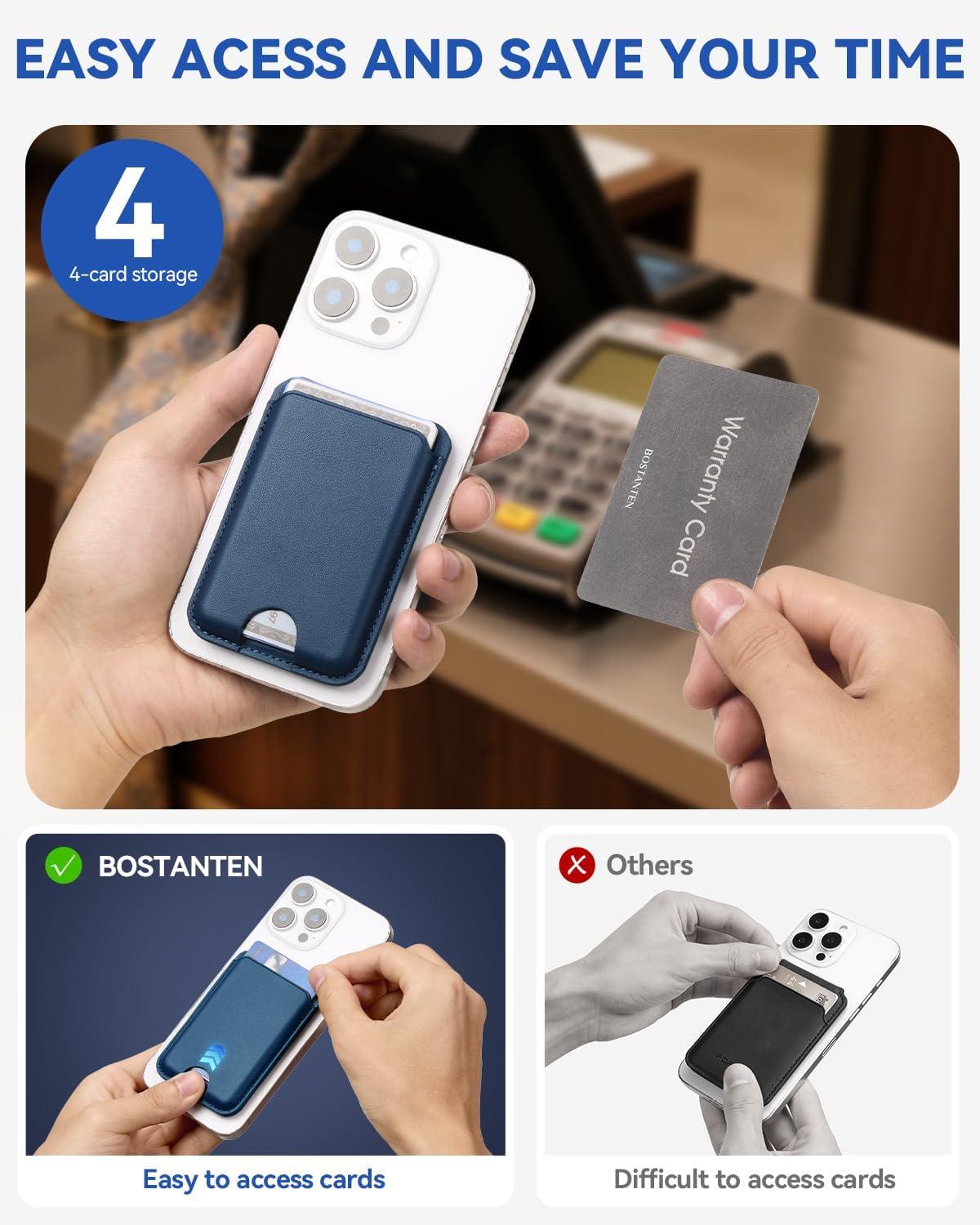 Strongest Magnetic Force: The magnetic card holder for iphone with powerful magnets ensure the wallet stays firmly attached to your iPhone, even during daily movement or active use. Never losing your wallet again.