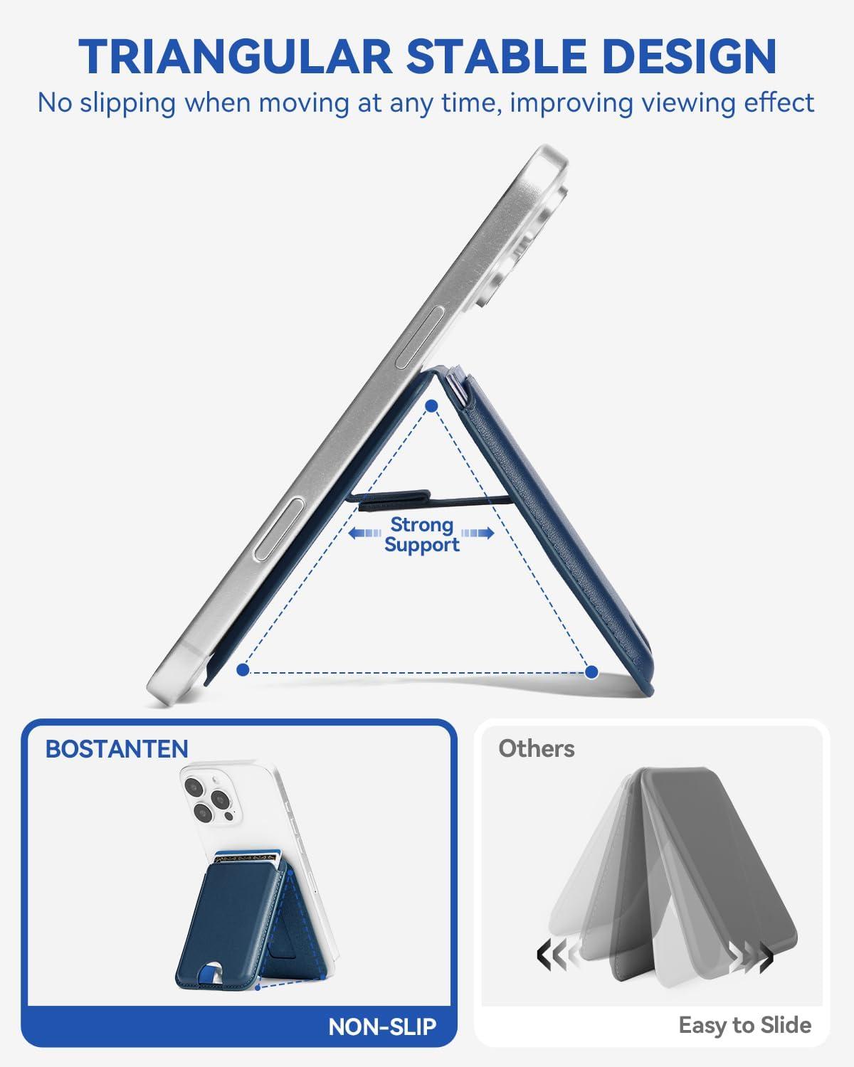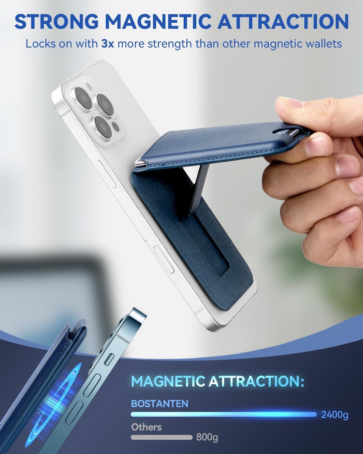 BOSTANTEN for MagSafe Wallet with Stand, Magnetic Wallet for iPhone 16/15/14/13/12 Pro Max Plus, Leather Minimalist Magnetic Phone Wallets Phone Card Holder Fit 4 Cards, Pink(Blue)