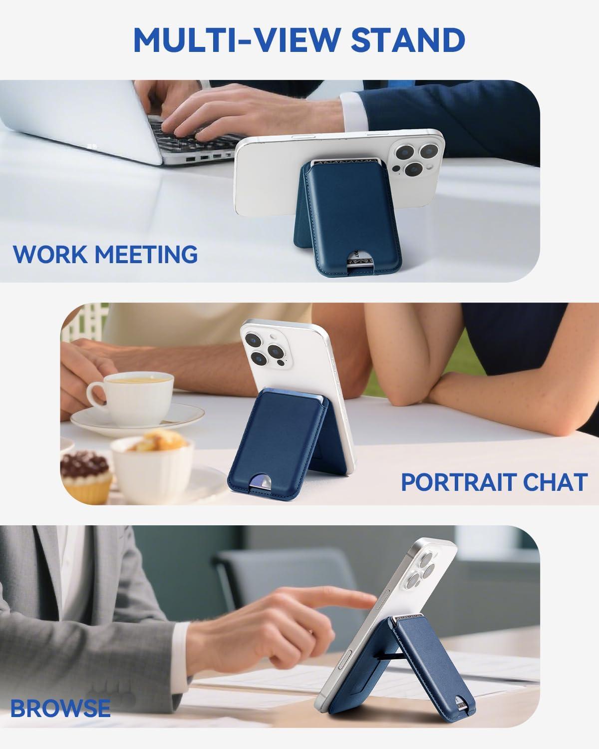No-Slip Phone Wallet Stand: This mag safe wallet features a stable stand and will not slip when in use. Our magnetic wallet supports both landscape and portrait modes that perfect for hands-free viewing, video calls, or reading. Mag wallet is a must-have for effortless convenience.
