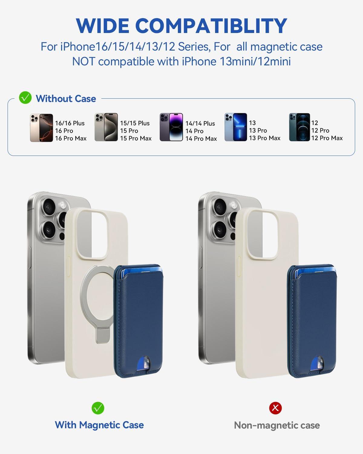 Compatibility and Great Gift: The magsafe wallet stand compatible with iPhone 16/15/14/13/12 series, including all Pro, Pro Max, Plus models and magsafe cases. !!! Not Compatible with iPhone 13 12 mini. This stylish and functional phone case card holder a thoughtful gift for holidays, birthdays, or personal upgrades.