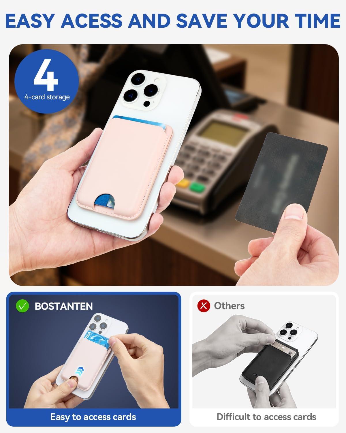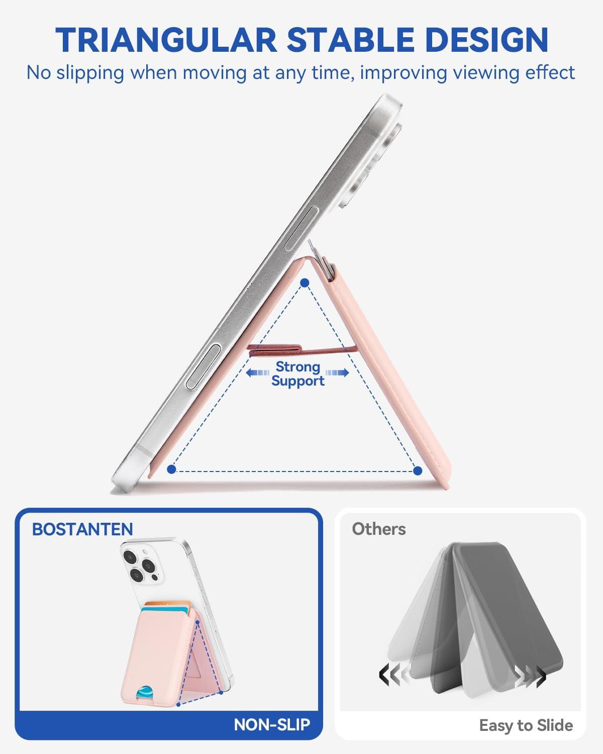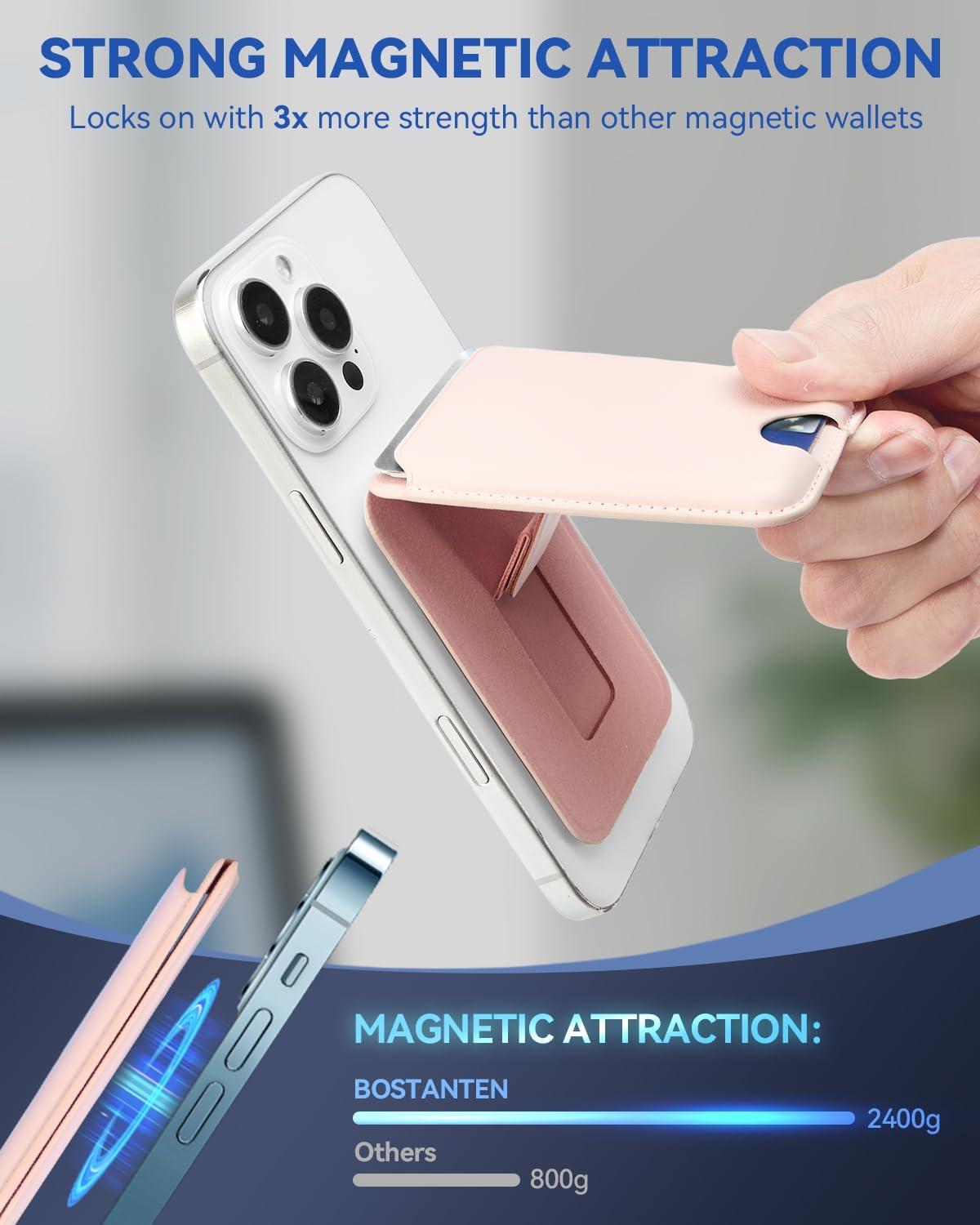 BOSTANTEN for MagSafe Wallet with Stand, Magnetic Wallet for iPhone 16/15/14/13/12 Pro Max Plus, Leather Minimalist Magnetic Phone Wallets Phone Card Holder Fit 4 Cards, Pink(Pink)