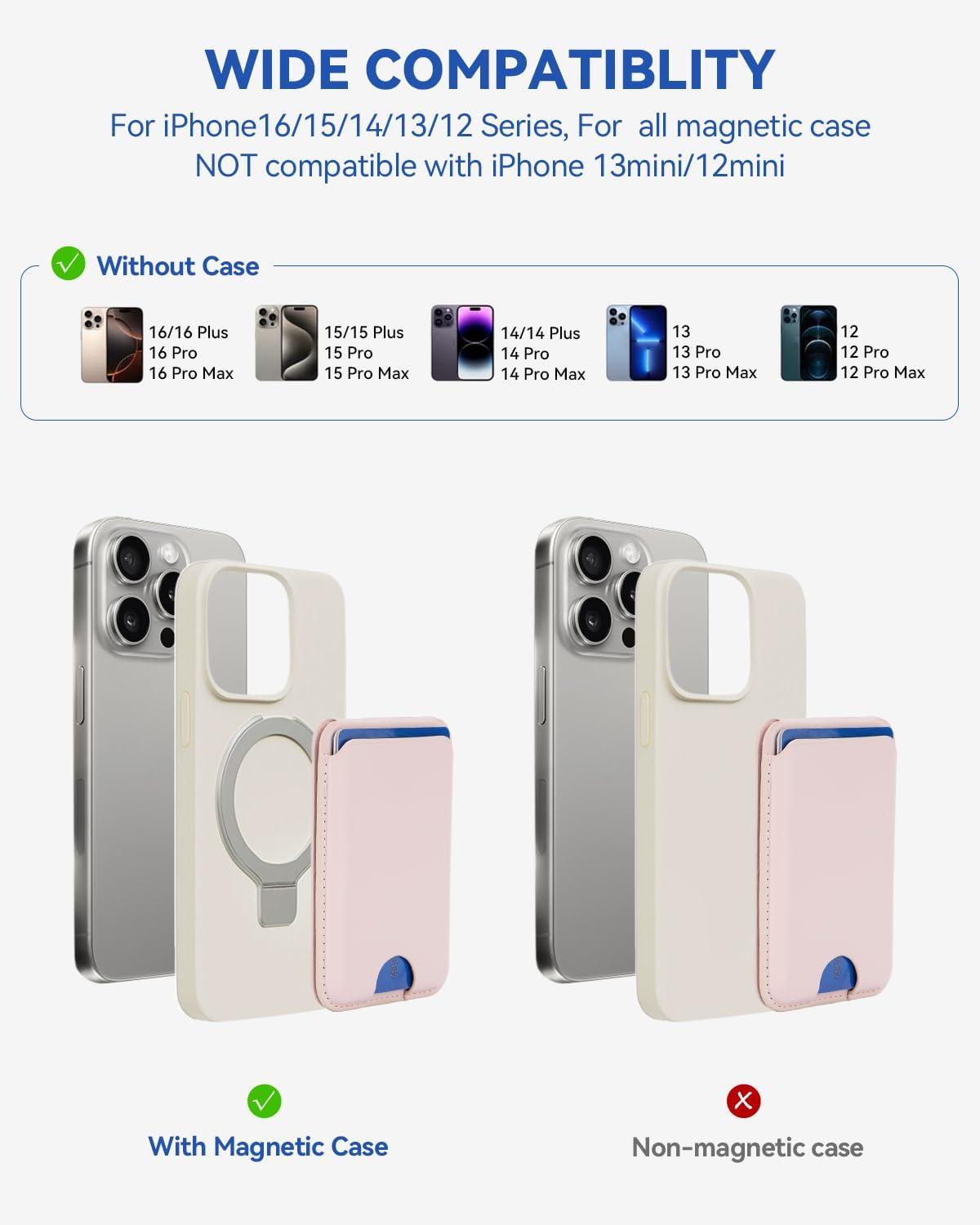 Compatibility and Great Gift: The magsafe wallet stand compatible with iPhone 16/15/14/13/12 series, including all Pro, Pro Max, Plus models and magsafe cases. !!! Not Compatible with iPhone 13 12 mini. This stylish and functional phone case card holder a thoughtful gift for holidays, birthdays, or personal upgrades.