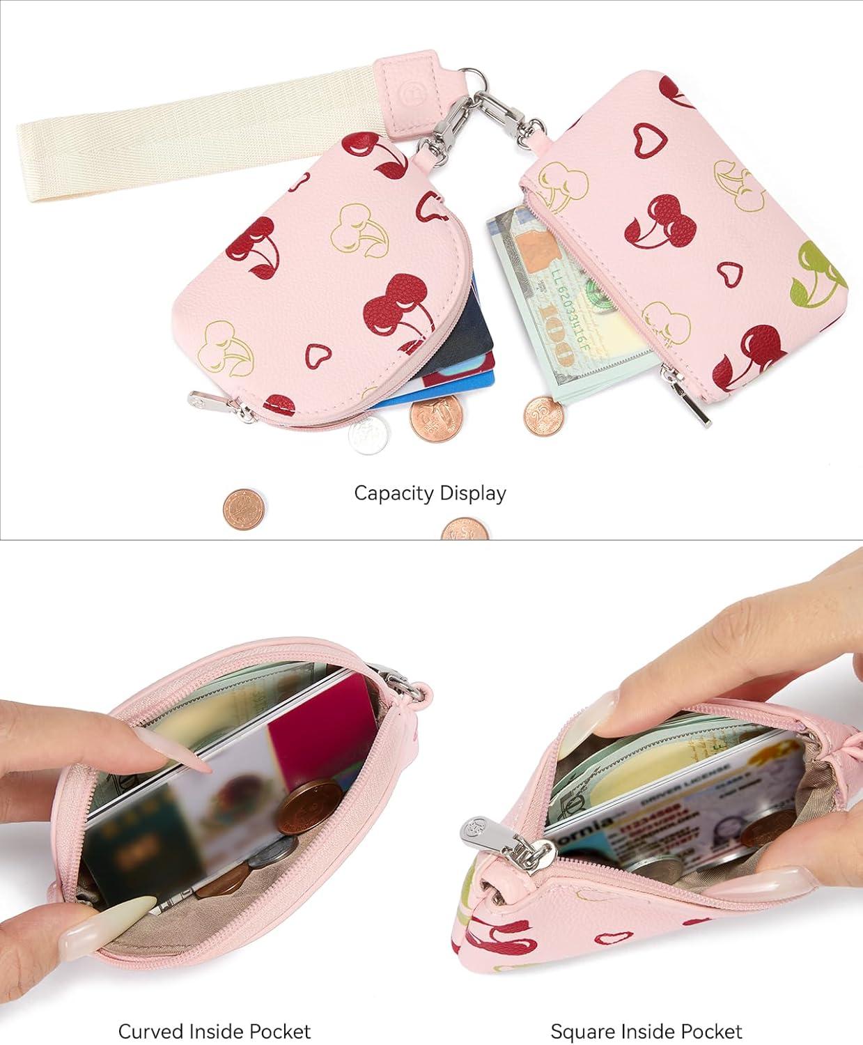 imageBOSTANTEN Keychain Wallet RFID Leather Credit Card Holder Wristlet Wallets for Women with Coin Purse  Lipstick Case BeigeBrownACherry Print