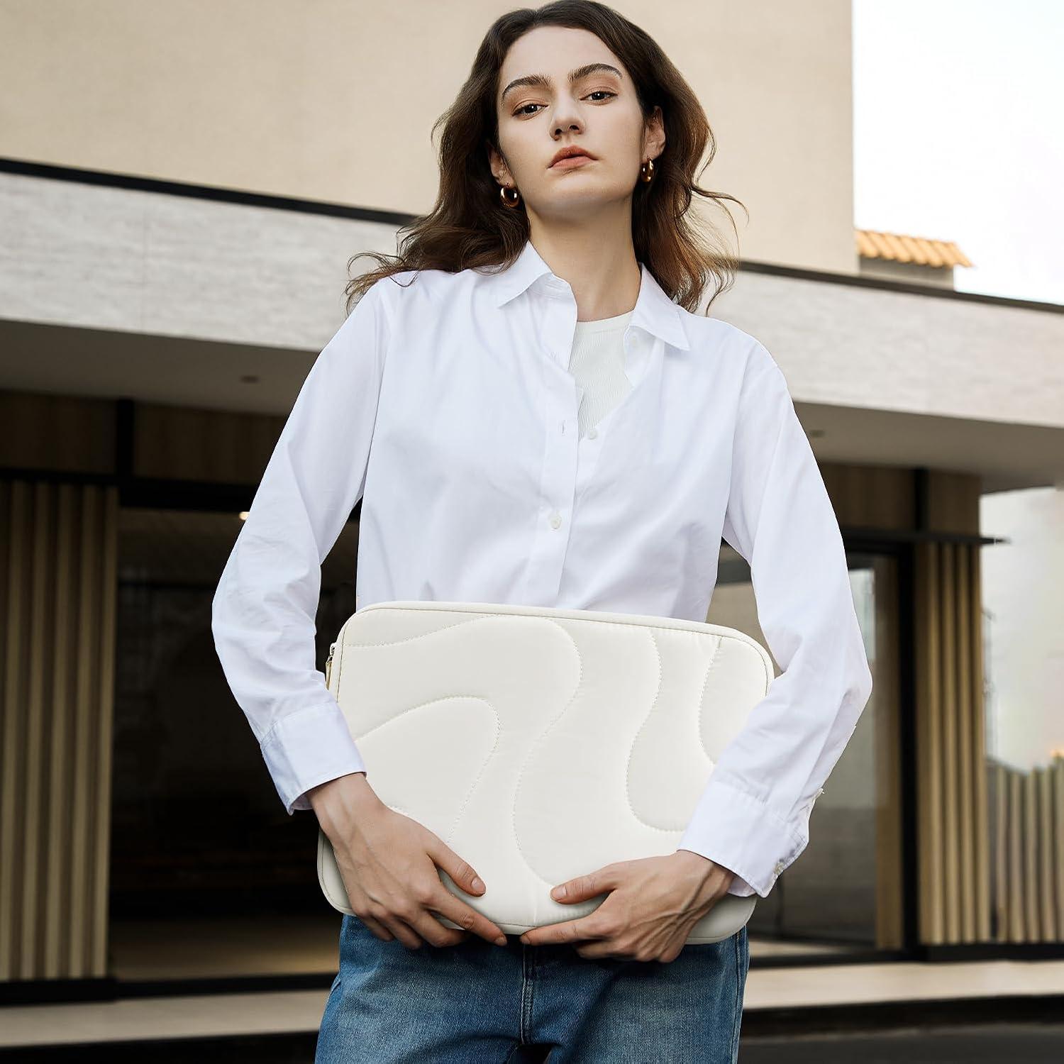 BOSTANTEN Laptop Case for MacBook Air 13 Inch M3 2024 Protective Case Quilted Puffy Laptop Sleeve for 13 Inch Dell,HP,ASUS,Microsoft(B-beige)