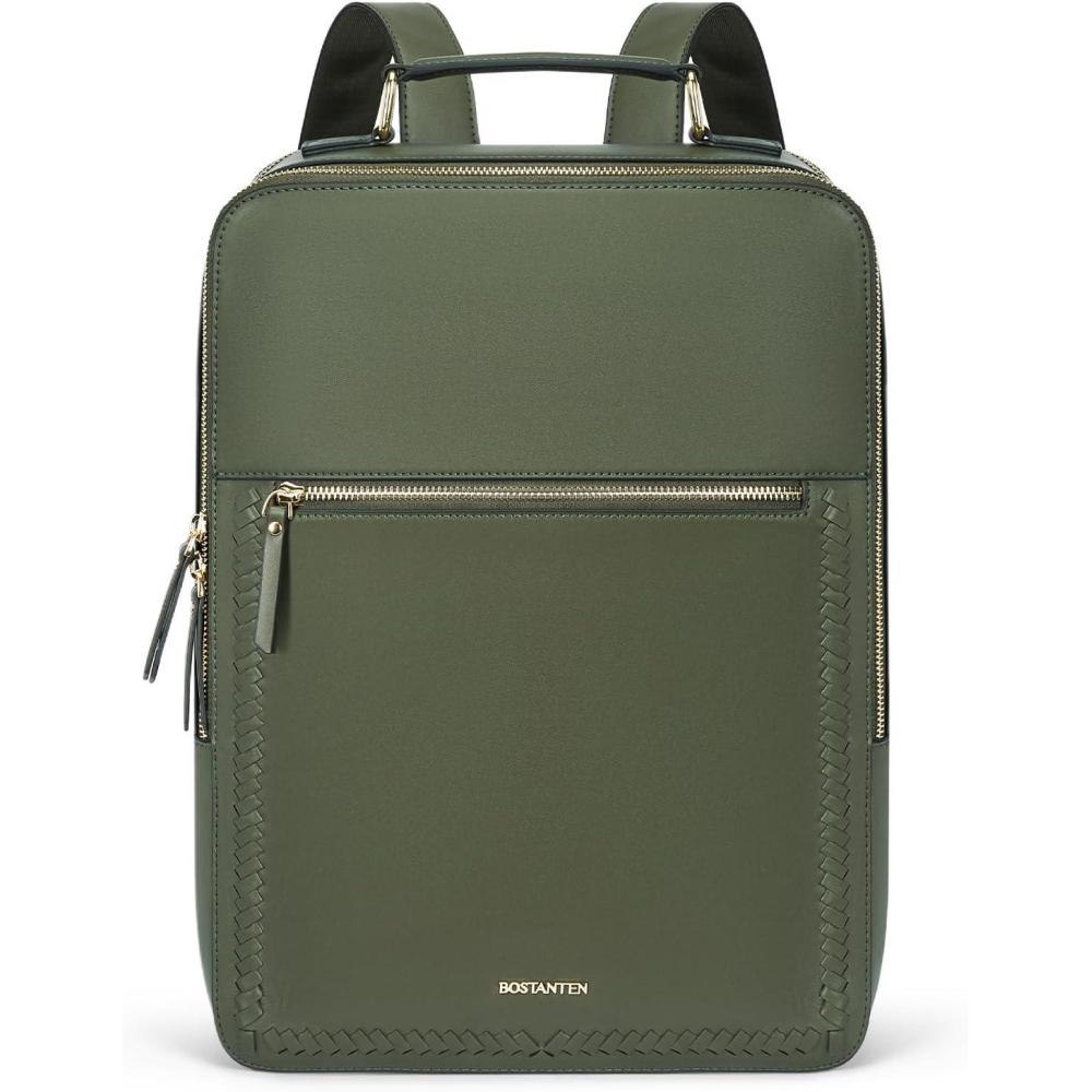 HIGH-QUALITY LEATHER&WOVEN DESIGN: This leather backpack purse is made of quality PU leather and durable lining with superb craftsmanship to create a valuable laptop backpack for the public. The leather backpack adopts a woven design, which is practical, fashionable and high-end and will never go out of style. Top U zippers for your convenience to get your computer in and out. Adjustable shoulder straps are comfortable and won't dig into your shoulder.