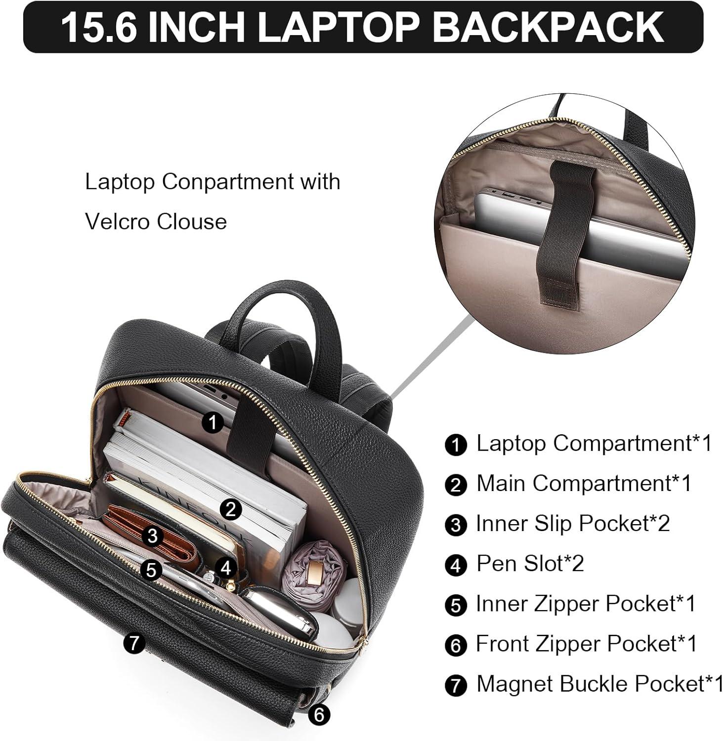 HIGH-QUALITY LEATHER: The laptop backpack women is made of quality PU leather, stand wear and tear polyester lining, and golden hardware making this backpack more luxurious and elegant. Top U zippers for your convenience to get your computer in and out. Adjustable shoulder straps are comfortable and won't dig into your shoulder.
