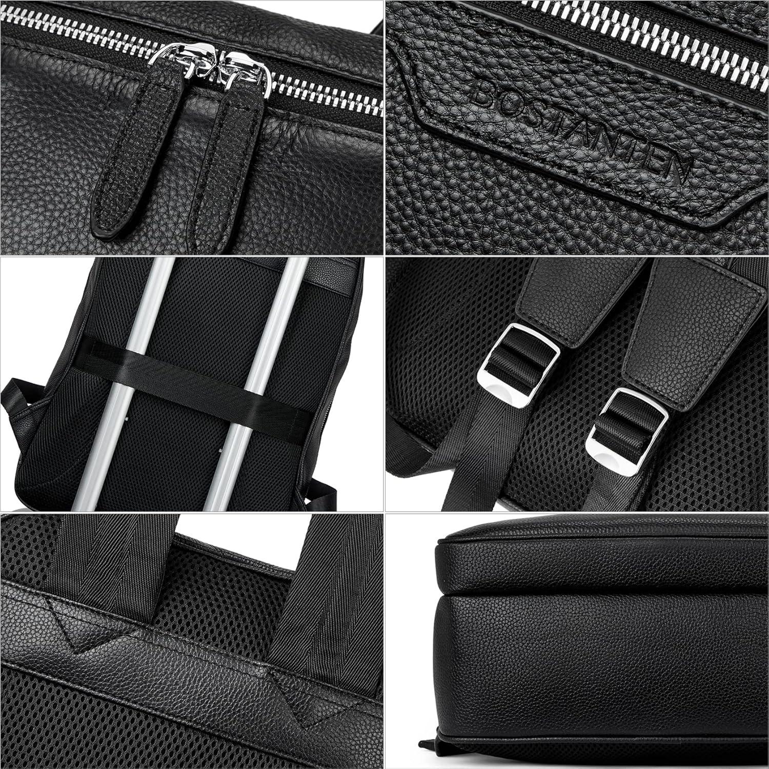 BOSTANTEN Leather Backpacks College 15.6” Laptop Travel Computer Shoulder Backpack For Men Coffeebrown(1-black)