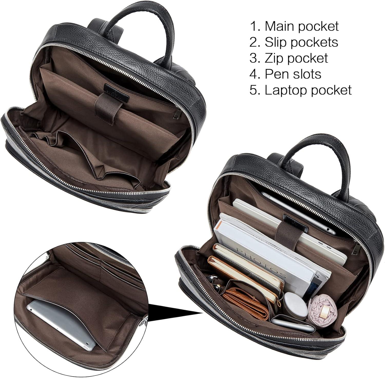 imageBOSTANTEN Leather Backpacks College 156 Laptop Travel Computer Shoulder Backpack For Men Coffeebrown1black