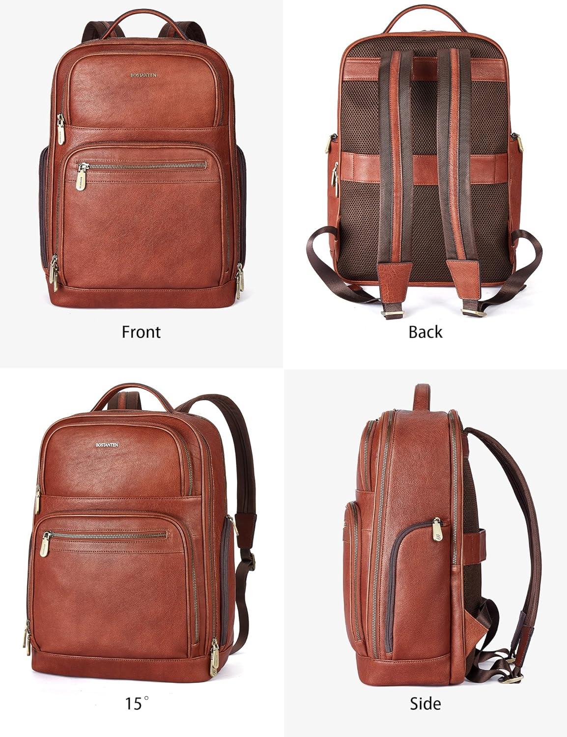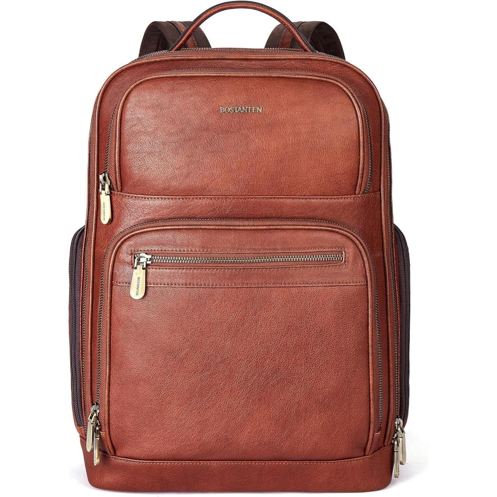 ❖VINTAGE DESIGN: Stylish and clean style with bronze color hardware and BOSTANTEN logo, crafted from the high quality materials, luxurious detailing and immaculate finish, it is never out of classy. Sturdy stitching allows the backpack purse to withstand heavy loads. U-shaped zipper closure can expand the rooms of mens laptop backpack. Adjustable shoulder straps can meet your needs of lengths. Carry handle for easy carrying in hand. This leather backpack meets any of your needs.