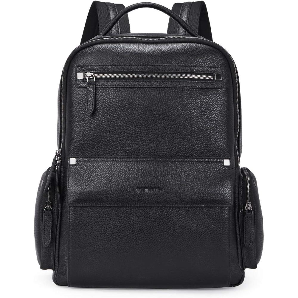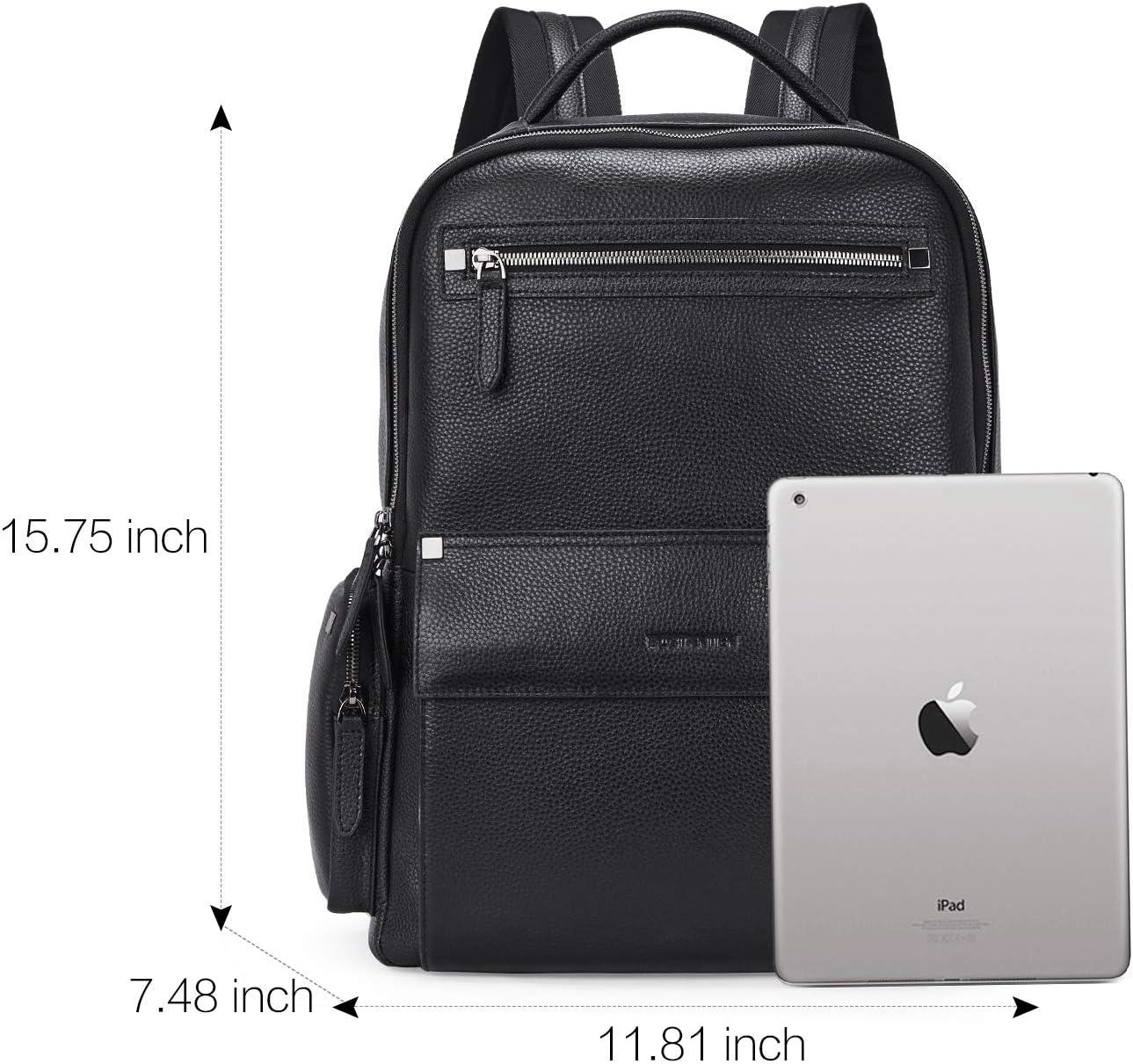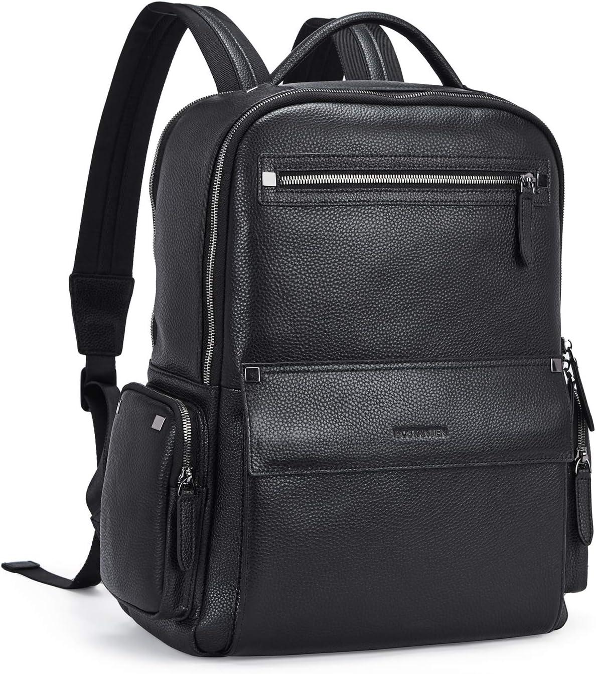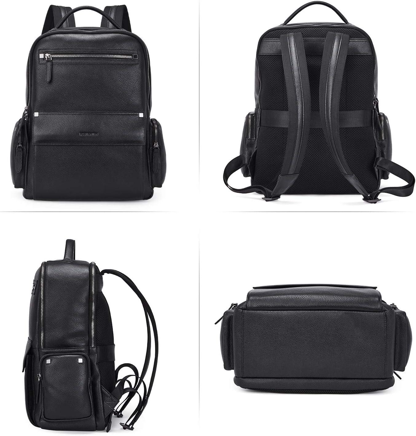 BOSTANTEN Leather Backpacks College 15.6” Laptop Travel Computer Shoulder Backpack For Men Coffeebrown(3-black Pebble)