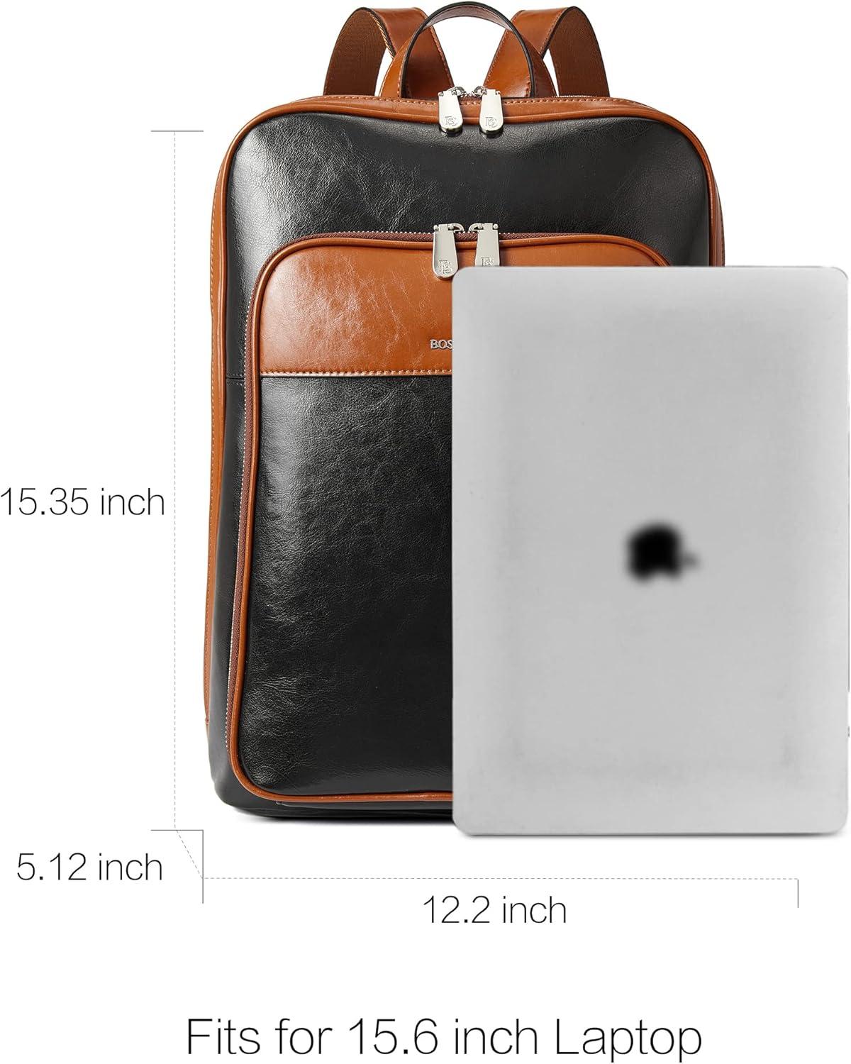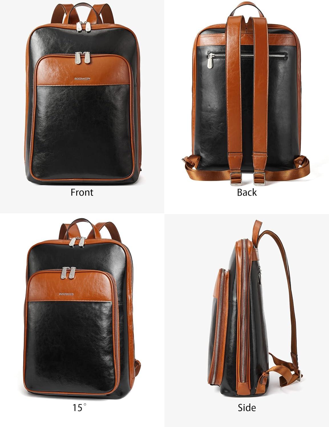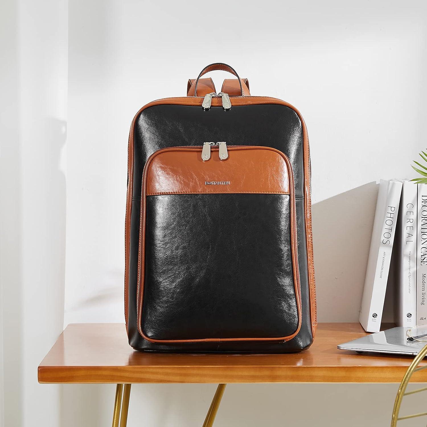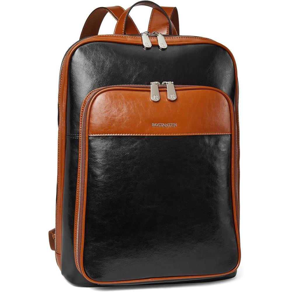 BOSTANTEN Leather Laptop Backpack for Women 15.6 inch Computer Bag Travel Work Daypack Large Size Bag(1-black&brown)